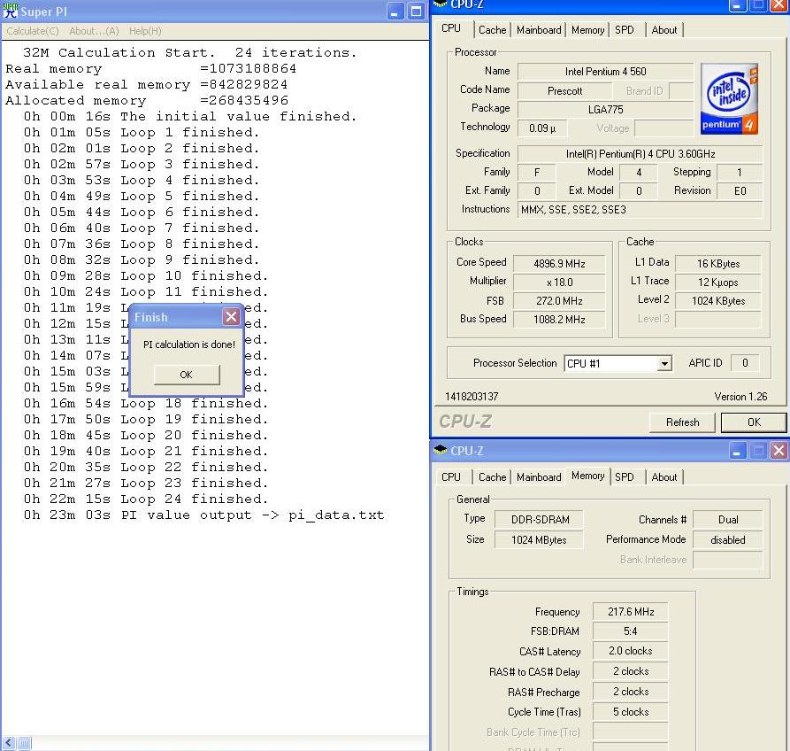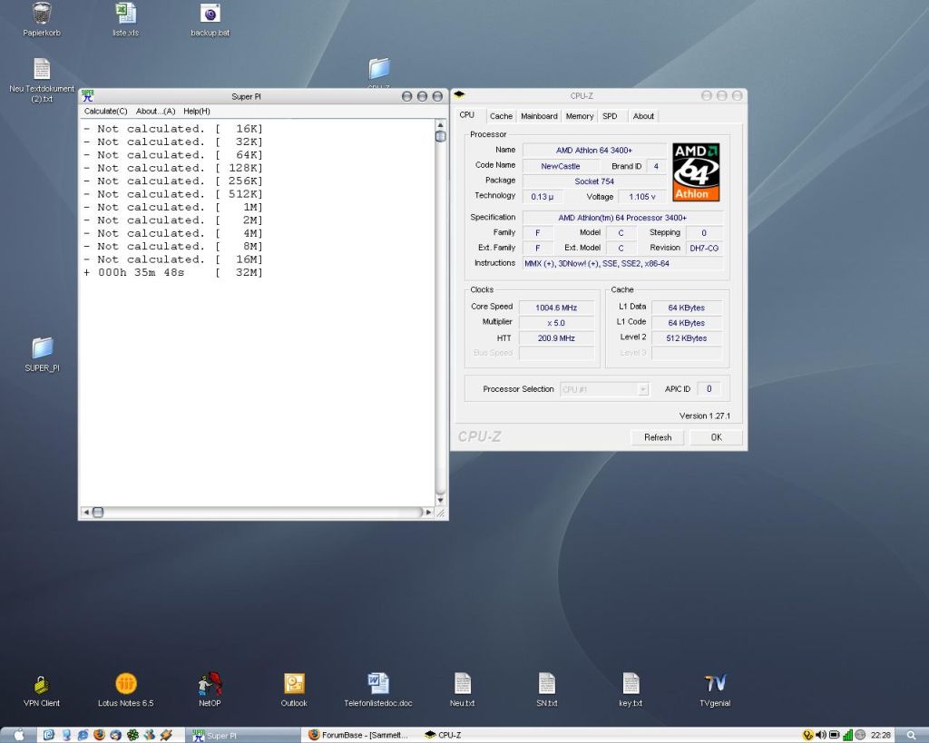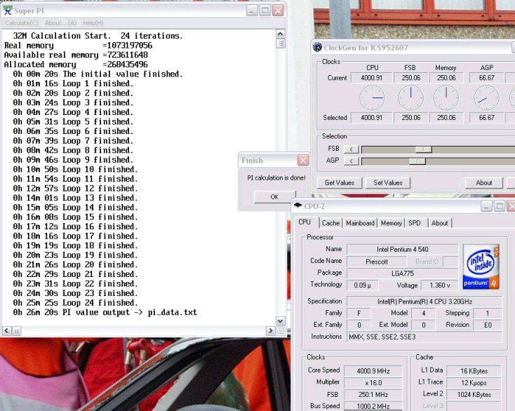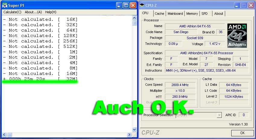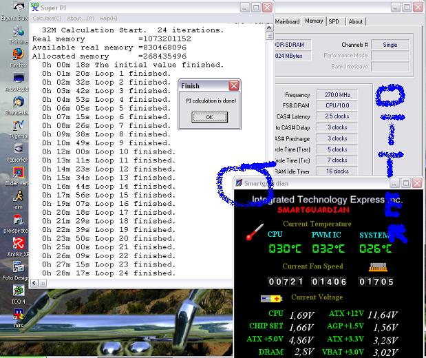 In jedem Post muss folgendes stehen: Prozessor, Mhz, Betriebssystem und die Art der Kühlung (Lukü, Wakü, Dice etc). Der Beweisscreen enthält das sichtbare Ergebnis (nicht der 24. Loop!) und die Hardwareinfo, sonst kann ich das Ergebnis nicht aufnehmen! Im Anhang habe ich die Problematik mit dem 24. Loop nochmal beispielhaft dargestellt. Die Daten für die Tabelle nehme ich aus dem Beweisscreen, deswegen muss man auf dem auch was erkennen können.