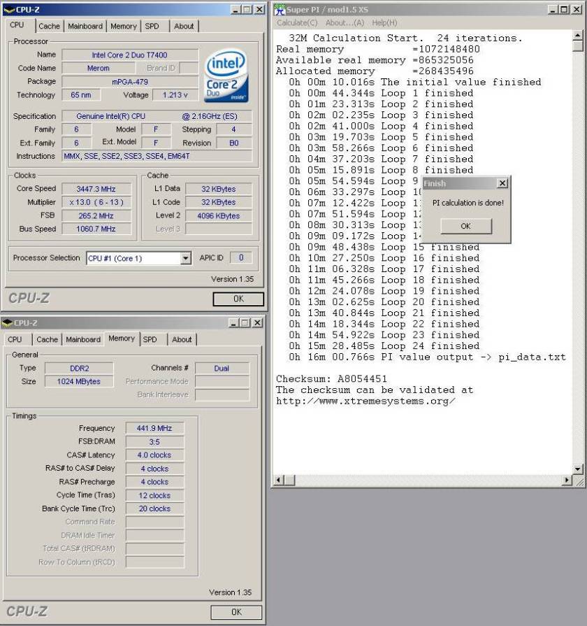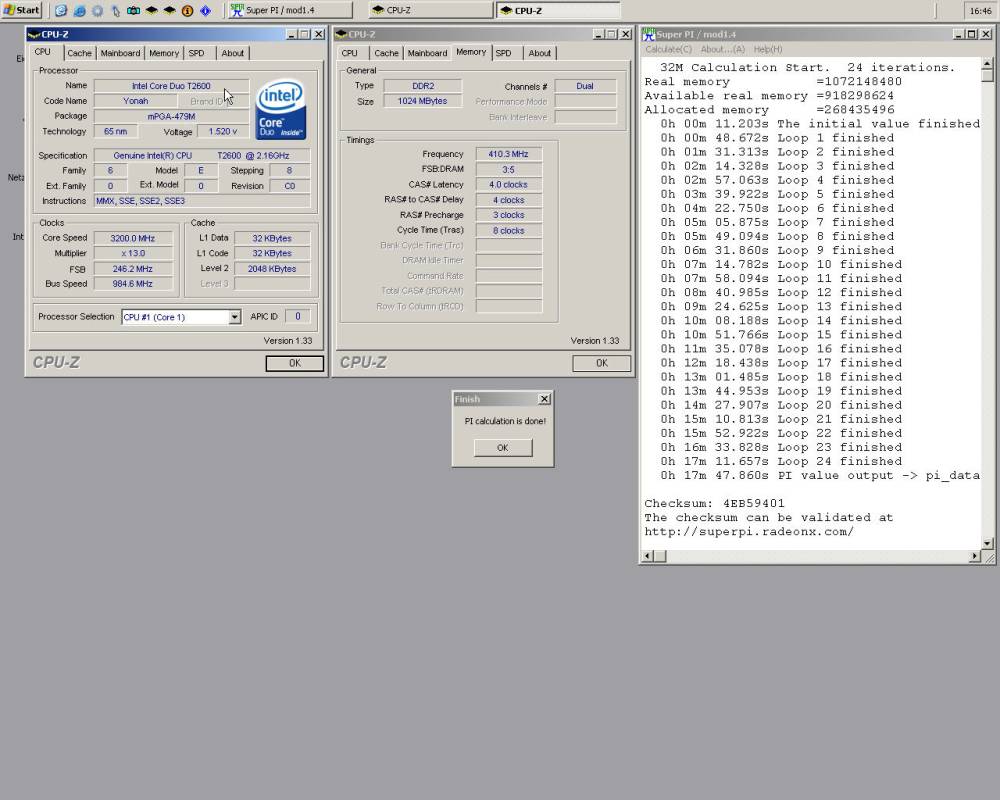 Das Rennen um die niedrigste Zeit, die ein System braucht, um die sogenannte 1M-Berechnung des Programms SuperPI zu vollenden, geht in eine neue Runde. So wurde der aktuelle Weltrekord, den ein Pentium 4-Bolide, dessen Prozessor auf 7,2 GHz übertaktet wurde, übertroffen. Der neue König: Ein Intel Core Duo T2600, betrieben auf 3,4 GHz (Standardtaktung: 2,16 GHz). Mit 17 Sekunden und 765 Millisekunden konnte das System den Pentium 4-Konkurrenten ausstechen, mit dem der dänische Kieferchirurg Tom Holck im Oktober letzten Jahres glänzen konnte. Doch auch dieser Rekord scheint nicht von langer Dauer zu sein. Ersten Berichten zufolge scheint die Intel Conroe-Familie den Wettlauf weiter anzuheizen. So gibt es im Forum der asiatischen Website HKEPC einen Thread, der Screenshots basierend auf einem übertakteten Conroe E6400-System zeigt und einen SuperPI-Wert von 16 Sekunden ausgibt. Der Prozessor wurde dabei von 2,16 GHz auf 3,11 GHz übertaktet. Es wird also deutlich, dass es Intel ein heißes Eisen im Feuer hat und Konkurrent AMD gewaltig nachlegen muss, um nicht den Performance-Anschluss zu verlieren.
