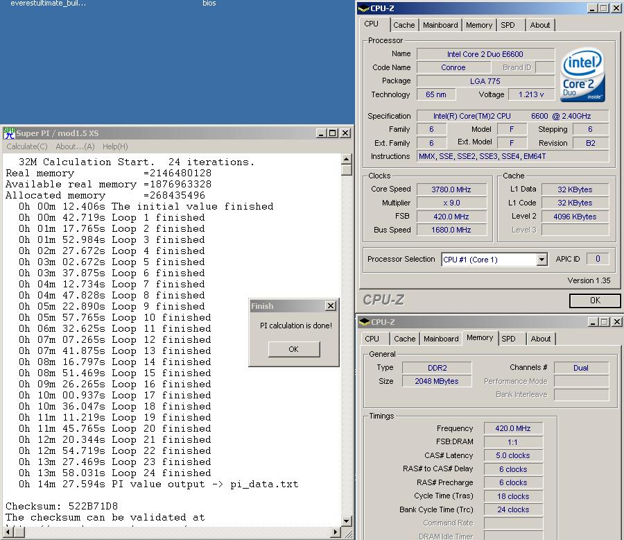 Du hast keine 3511MHz, warum hast du den Multiplikator auf 6 gestellt? Normal ist der auf 8. Hab mich auch schon gewundert, denn 8*439 wären ja schon nen wahnsinns E6400 Modell.