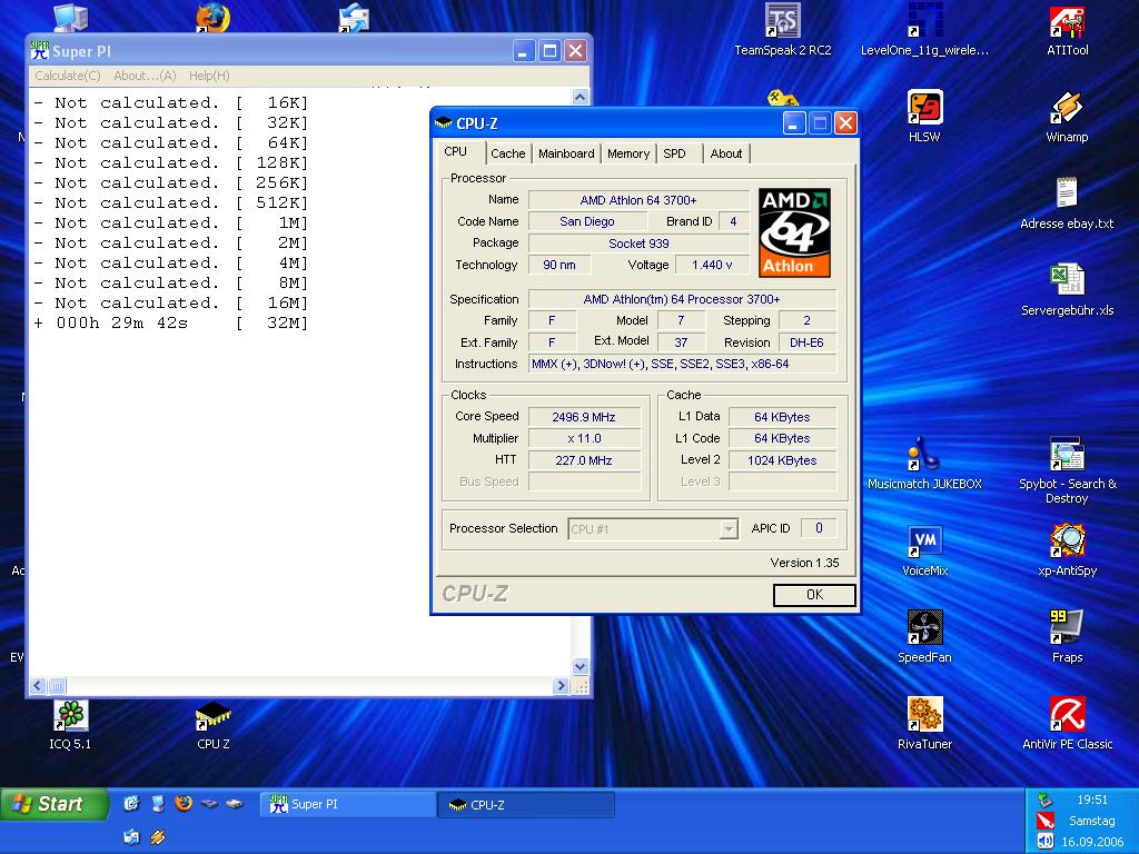 Vielleicht kann ja mal jemand nen X2 3800+ mit Standardtakt und DDR2-667 @ 4-4-4-15 1T laufen lassen. Würd mich mal interessieren. Der einzige Unterschied ist ja der L2-Cache.