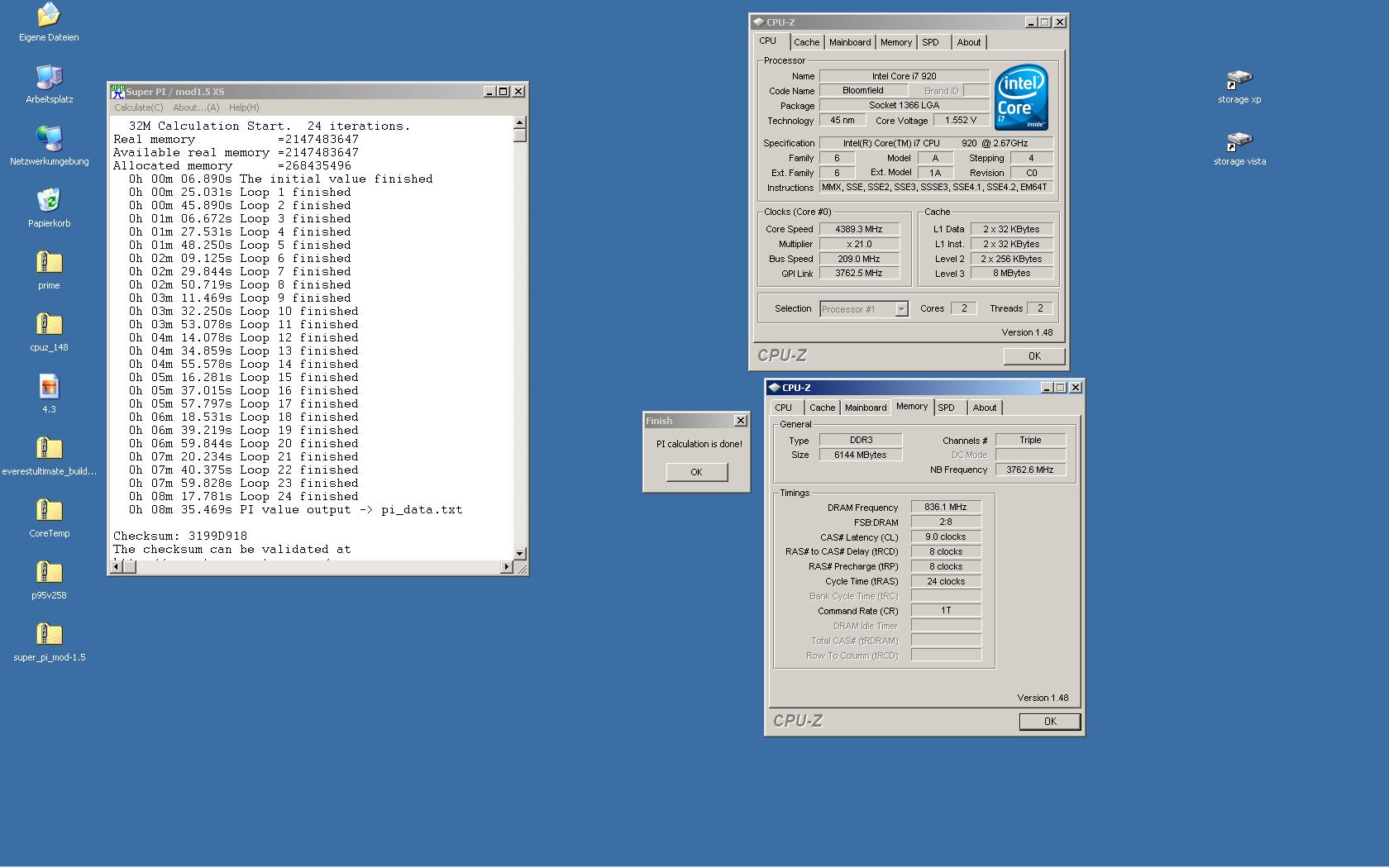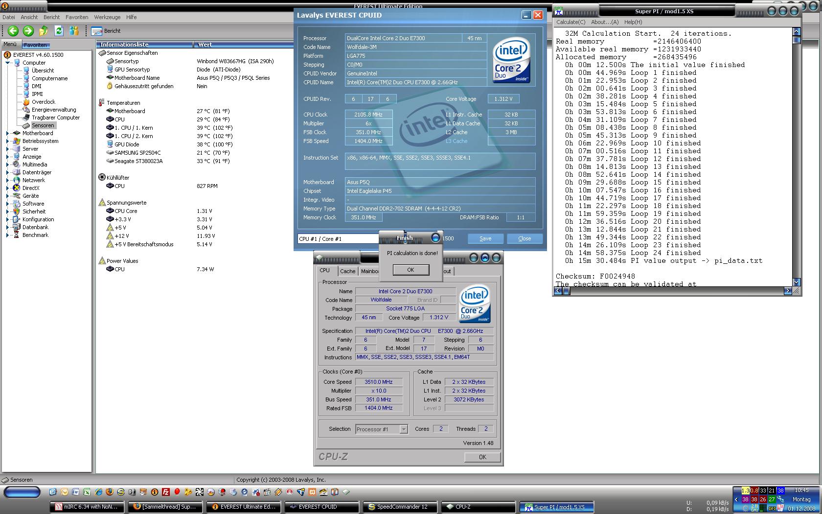 7m 29,734 s / stummerwinter / E8600 @ 6395 MHz / VCore @ 1,94 / FSB 639 / Teiler 3:5 (BIOS 2:3) / MUSHKIN PC14400 959 Mhz 7-6-5-15 1T / LN2 / WXP 32