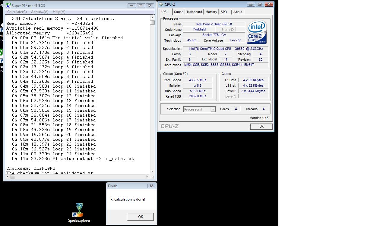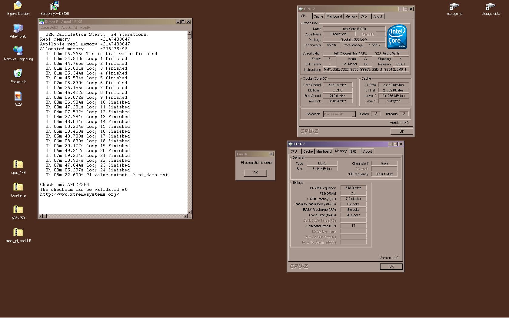 8m 22,609 s / WillyWattwurm / Core i920 @ 4452 MHz / VCore @ 1,568 / BCLK 212 / FSB/RAM 2:8 / 6GB Corsair Dominator @ 848MHz 7-8-8-20 / Wakü / Win XP32