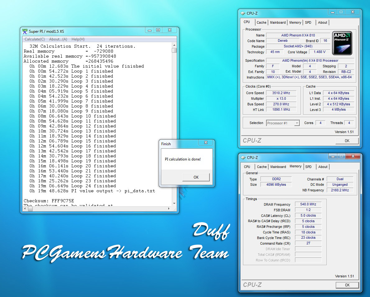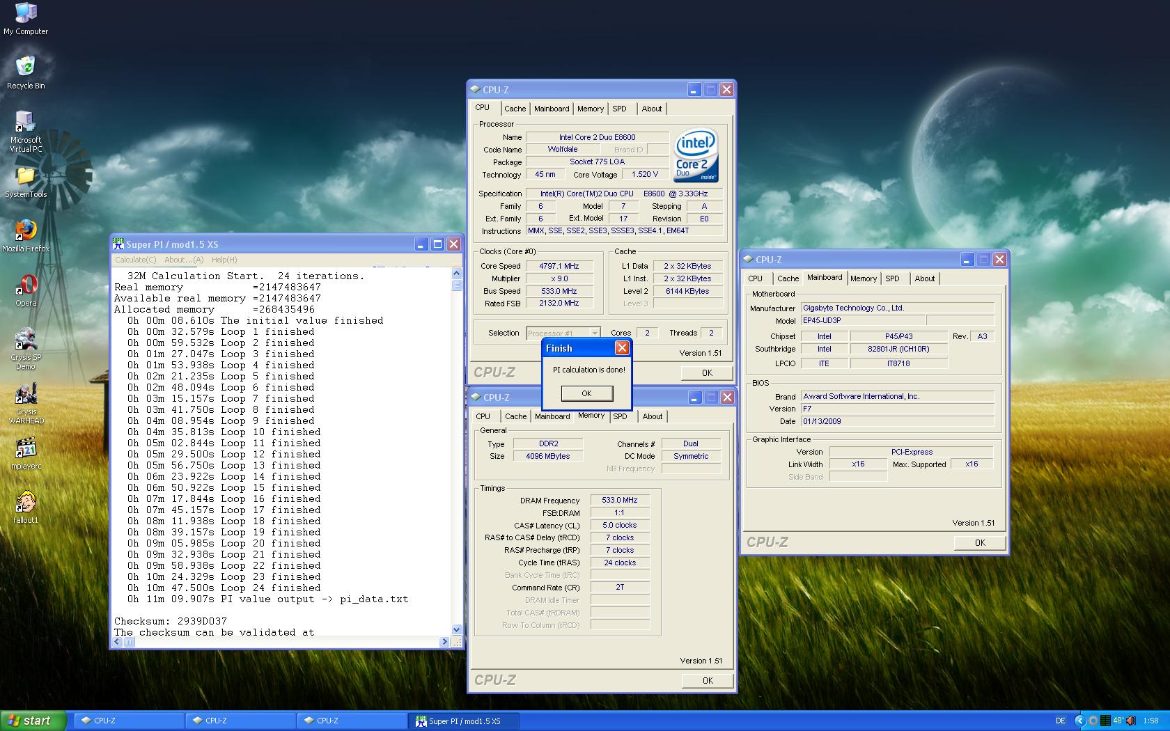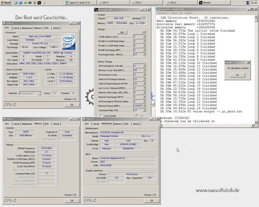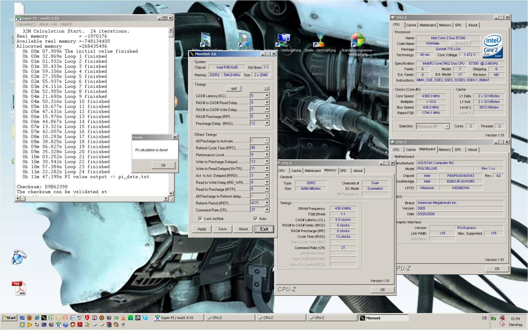 11m25,468s/ keilinho/ E8600@4GHz/ VCore 1,232V/ FSB500/ Teiler 3:4/ PC6400@666,7MHz 5-5-5-15 2T/ Gigabyte EP45-UD3/ WinXP32/ LuKü