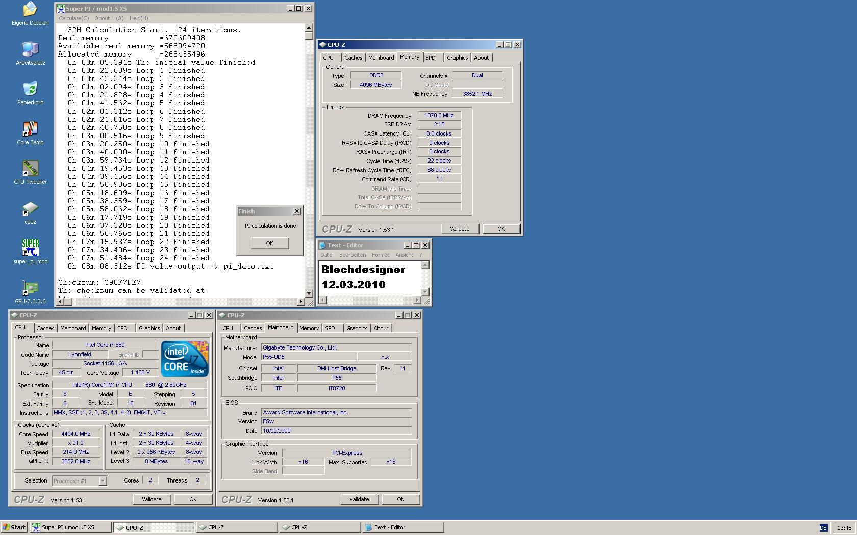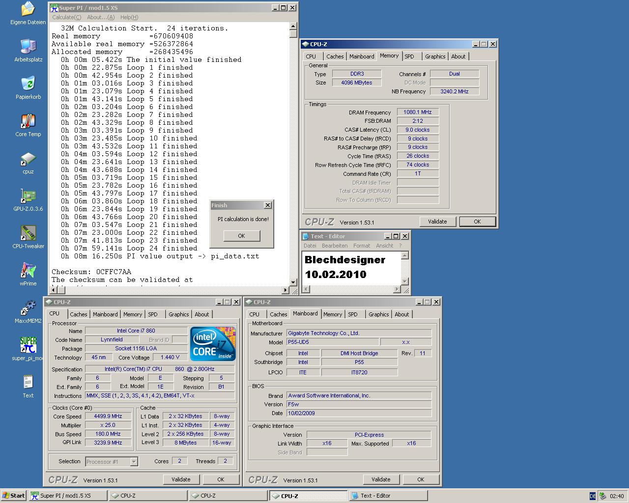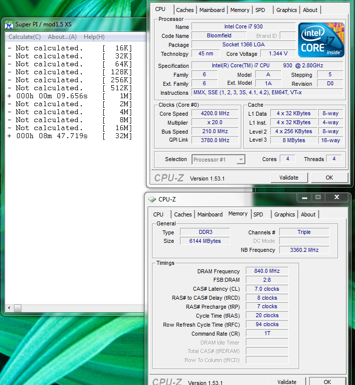8min 47.719s / selberbauer / Core i7 930 @4200MHz / Vcore 1.344V / BCLK 210MHz / 3x2GB Corsair Dominator GT @840MHz / Wakü / Windows 7 Ultimate 64Bit