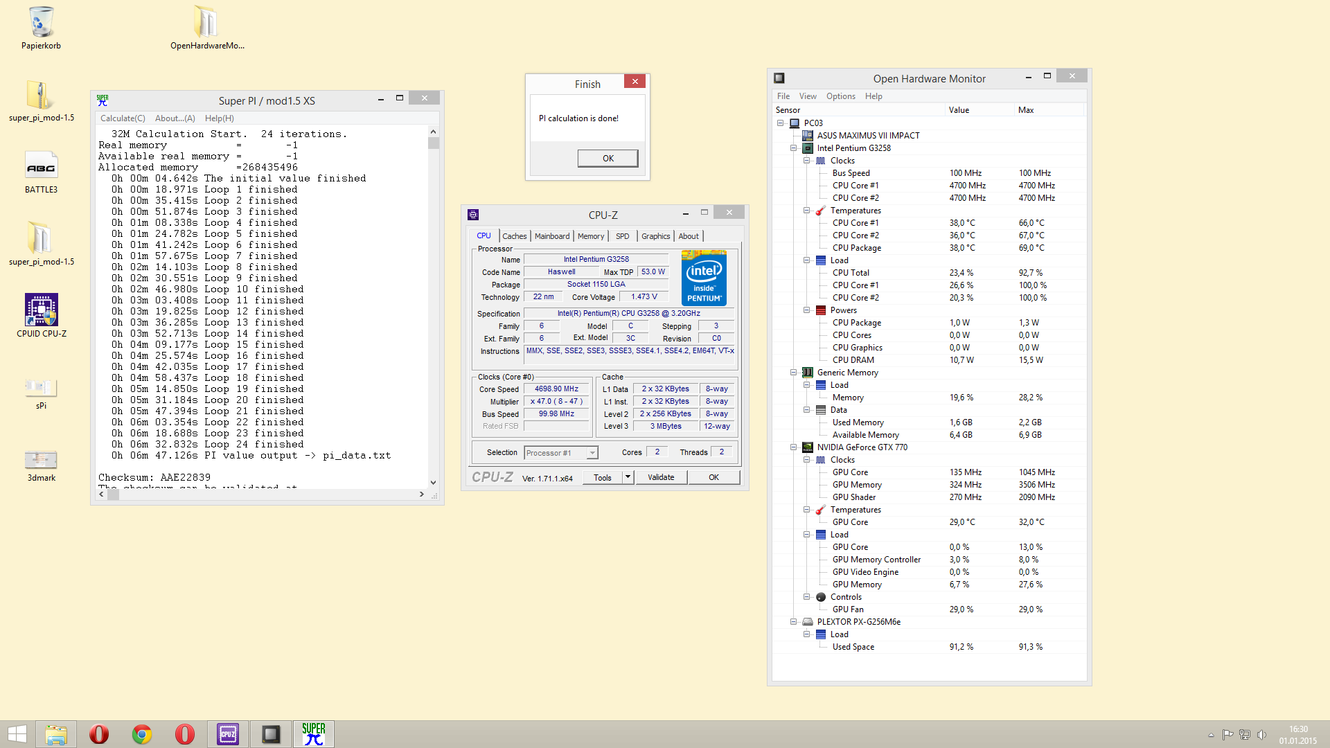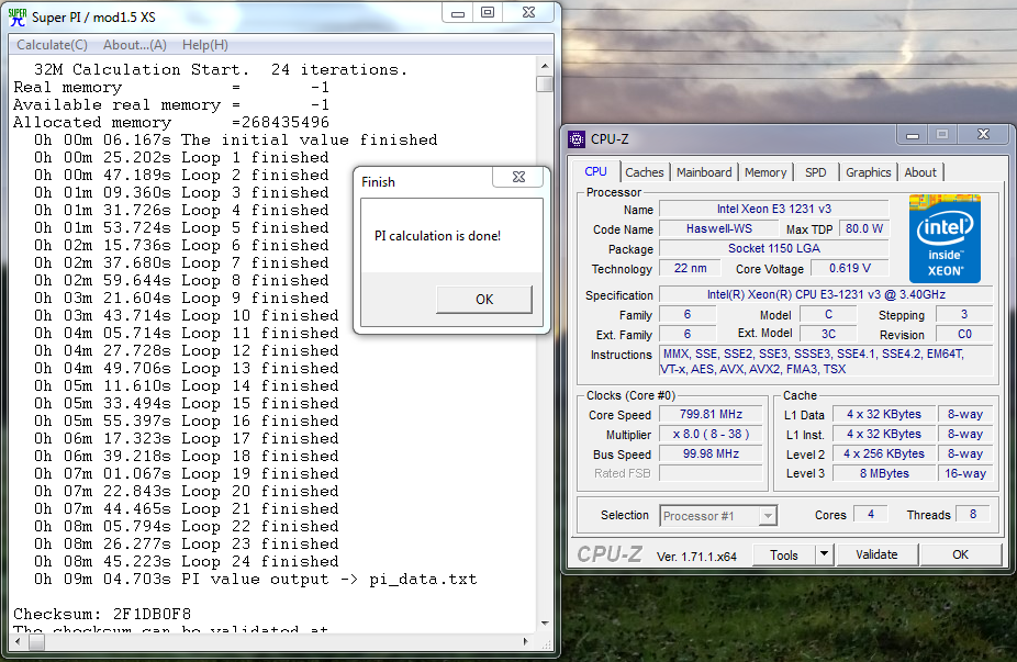 Super Pi 32M: 1h 02m 19,404s