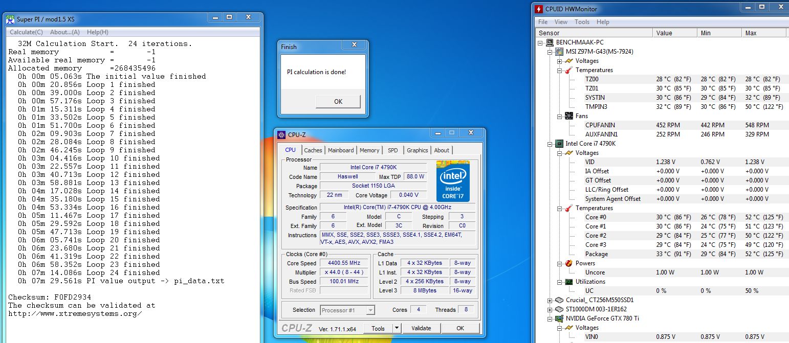 Volle 4,4 Ghz (SuperPI auf Kern #2 festgenagelt), Priorität im Taskmanager auf "Hoch" und gib ihm.