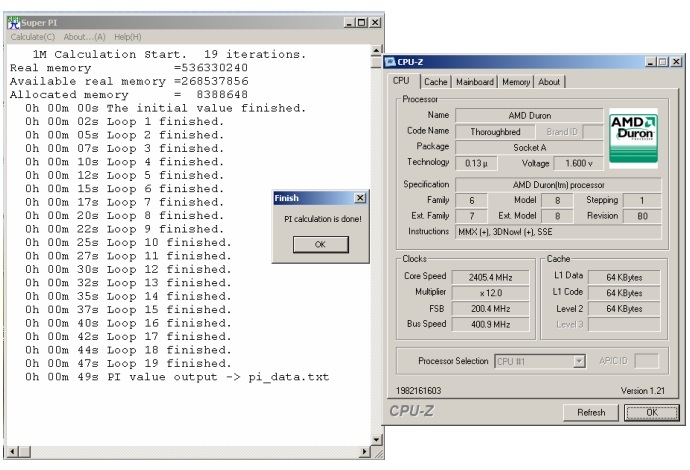 @"Die ersten beiden Screenshots zeigen den Duron 1600 den ich mal auf 2400MHZ getaktet hatte, allerdings nur so zum Spaß. Da waren nämlich ca. -4 Grad in meinem Zimmer. ;-) Aber er lief komplett stabil. Er wurde auch mit den Komponenten betrieben die in meiner Signatur sind, allerdings war wie gesagt das Gehäuse offen und lag vor dem offenen Fenster." Ein ganz seriöse oc-methode. spricht nichts dagegen, sondern viel dafür. von +21°c Raumtemp. auf -4°c ist ein delta T von 25°c, klar. und das schon eine nennenswerte größenordnung. sozusagen "fast schon eine halbe vapochil zu anfang". denn die machte halt in vielen fällen auch nur noch weitere -25°c auf rund -30. aussagen, trends lassen sich so sehr wohl ableiten, wenn man sauber arbeitet. (will sagen mit -4°C kalter cpu startet und direkt auf 230x12 geht.)