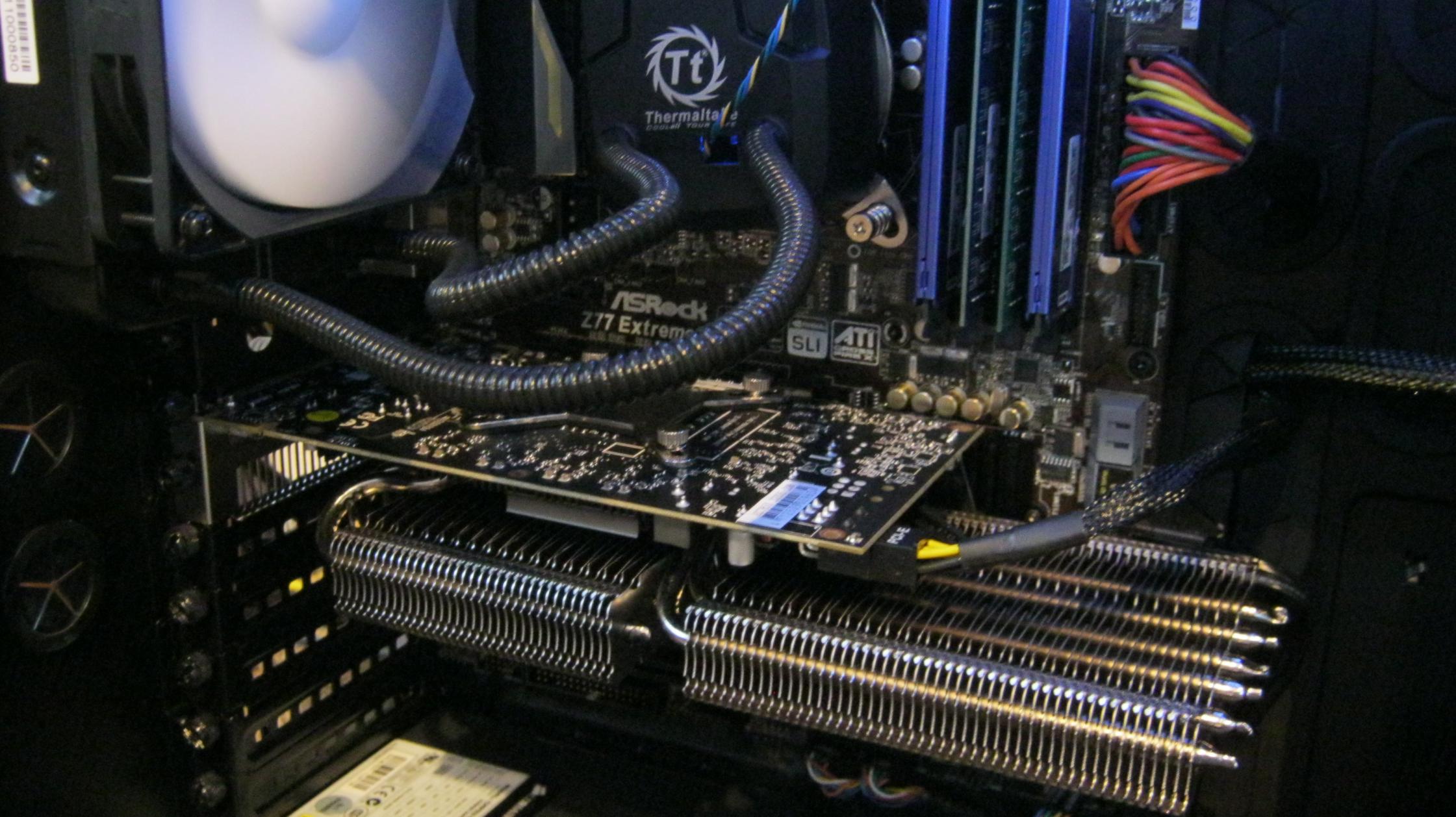 Wie gesagt es schleift nur der rechte Lüfter, was wohl ein Einzelfehler ist. Aber die Abstände zwischen Lüfter und Halterung sind zu gering. Ob das bei einer Karte die ok ist auf dauer gut geht weis ich nicht.