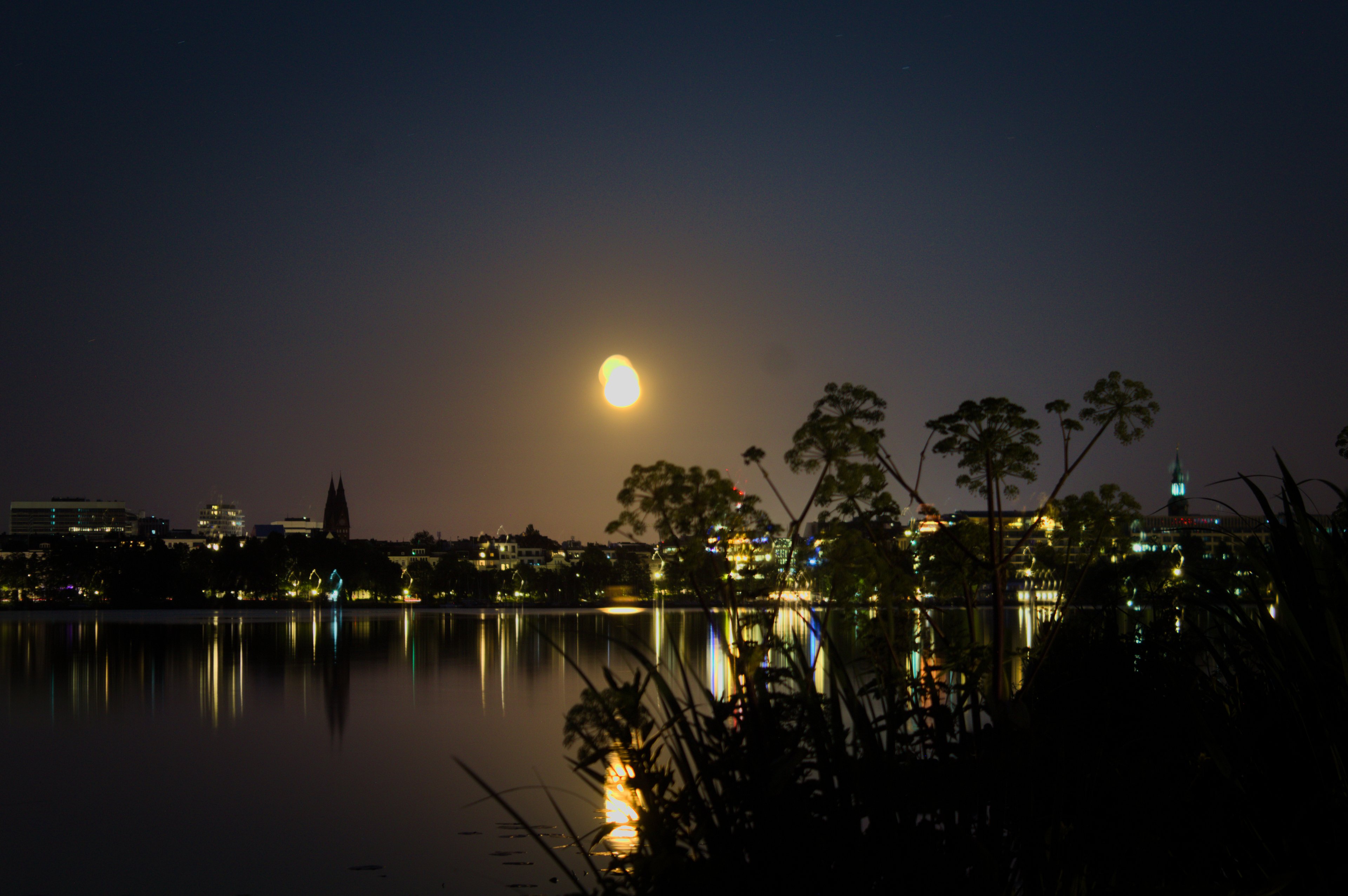 Hat es jemand gestern geschafft, den "Erdbeermond" zu fotografieren? Ich war mit meiner EOS 1200D und Standardobjektiv und Stativ an der Alster. Aber das war wahrscheinlich von Anfang an zum Scheitern verurteilt...