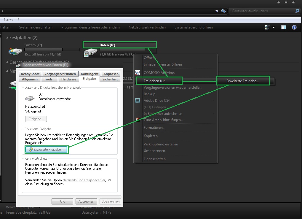 Skilla44 schrieb:Zuerst hatte ich keinen Erfolg. Bei mir kam trotzdem immer eine Passwortabfrage wenn ich auf einen anderen PC im Netzwerk zugreifen wollte.