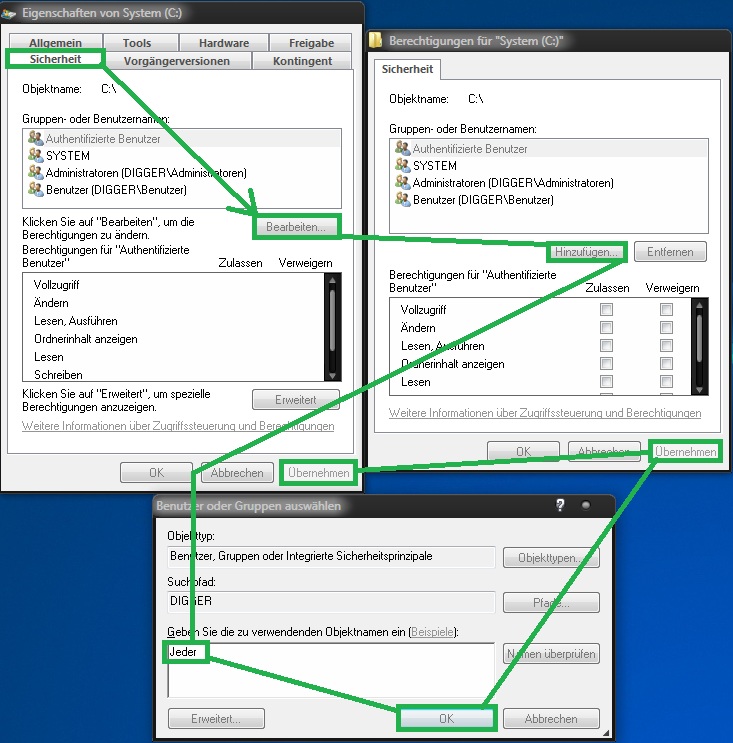 Die Lösung: Entweder müssen alle PCs verschiedene Benutzernamen haben oder die Benutzernamen sind gleich, dann müssen die Passwörter auch gleich sein.