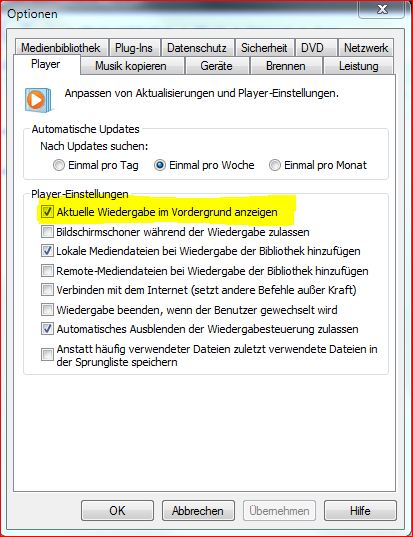 Wenn das nicht der Fall ist, dann hast du wohl in den WMP-Optionen eingestellt, dass der Player immer im Vordergrund bleiben soll.