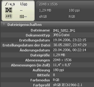EXIFs sind vorhanden, bei bedarf einfach über Rechtsklick ==> Eigenschaften aufrufen.