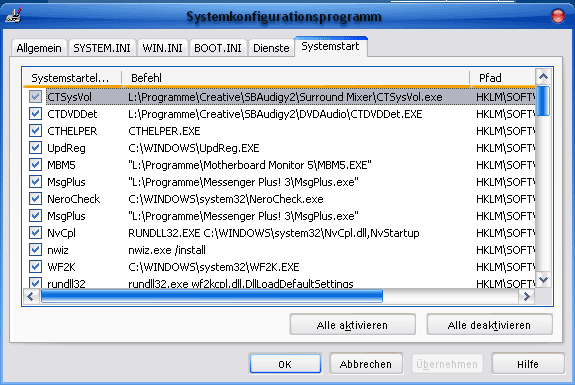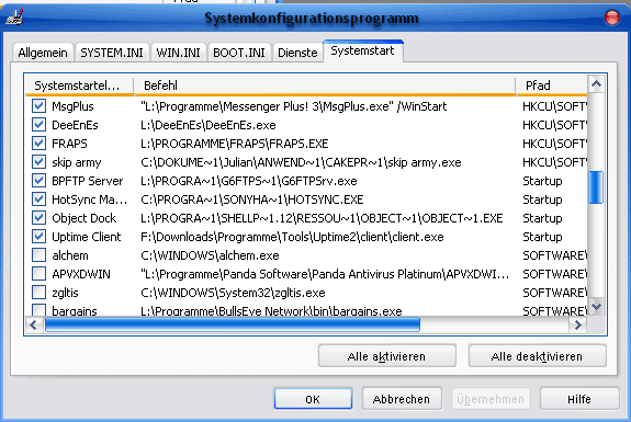 Also ich hab antivir laufen lassen. Der findet nach jedem reboot neues und im Taskmanger sind viele komische Sachen, die mach ich zwar zu aber die kommen wieder und ausem autostart rausnehmen geht auch nicht.