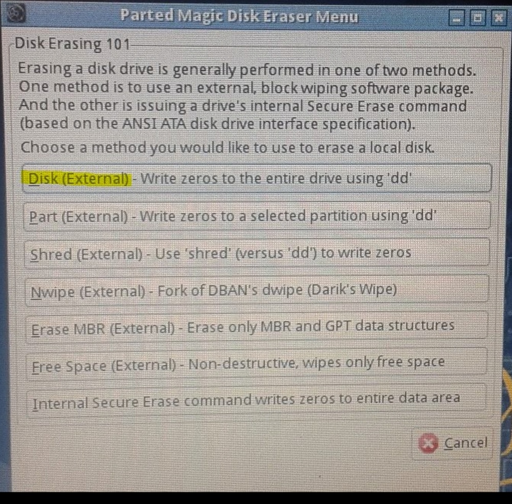 Kann ich mit Erase Disk von Parted Magic 2013-08-01 auch die notwendigen Schritte für die HDD vornehmen?