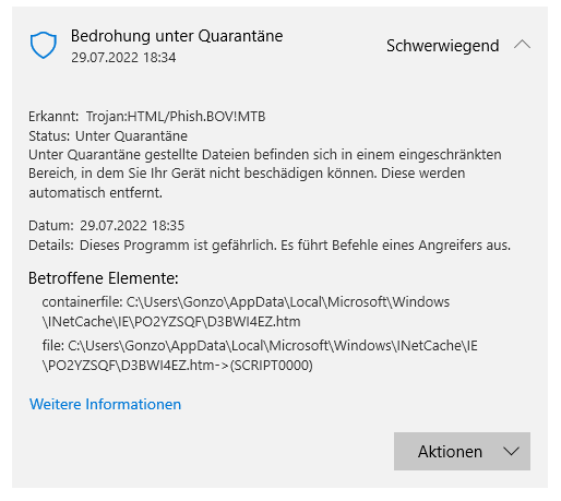 Microsoft Defender Antivirus hat einen Trojaner auf meinem System gefunden:
