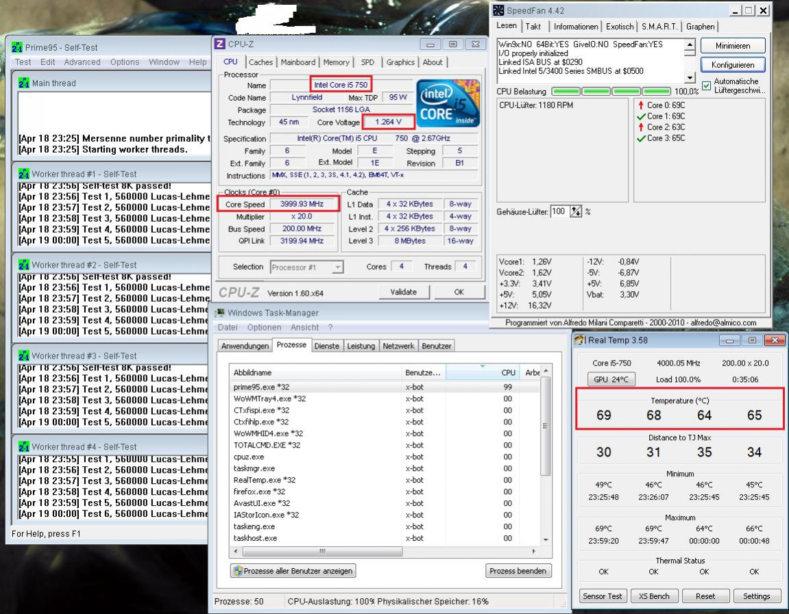 Q9550 E0 (Pretestet@3,9 gekauft (PCTweaker (RIP)), lief jedoch dauerhaft nur mit 3,4 Ghz)