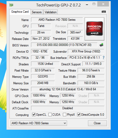 Am besten schaust du auch mal deine genaue Modellnummer nach, denn von der 7870 gibt es ja mehrere: http://products.xfxforce.com/en-us/Graphics_Cards/AMD_Radeon™_HD_7870/FX-787A-CDFC