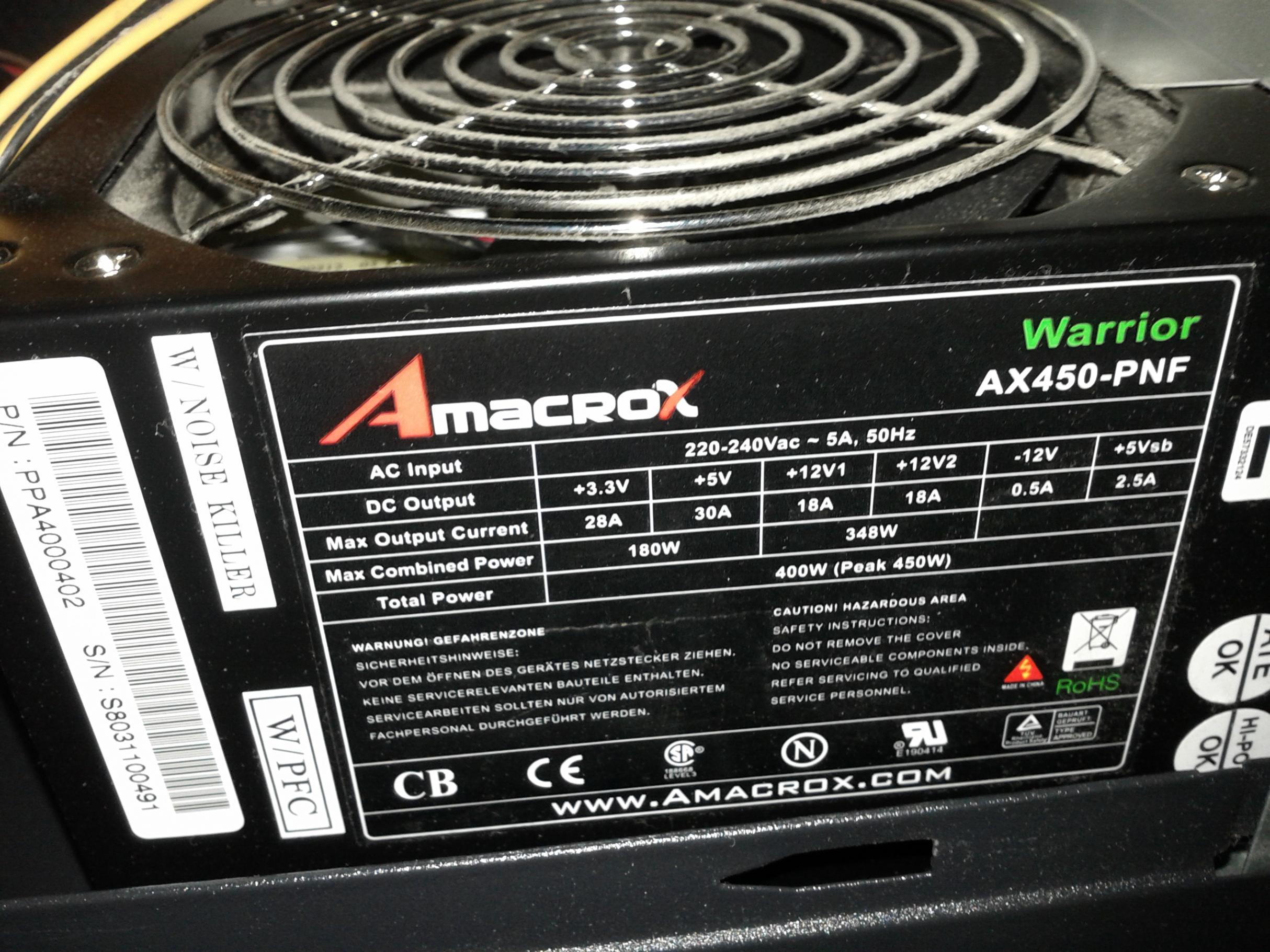 Das betagte Amacrox Warior 400W (ist immerhein ein Netzteil mit Elektronik von FSP
