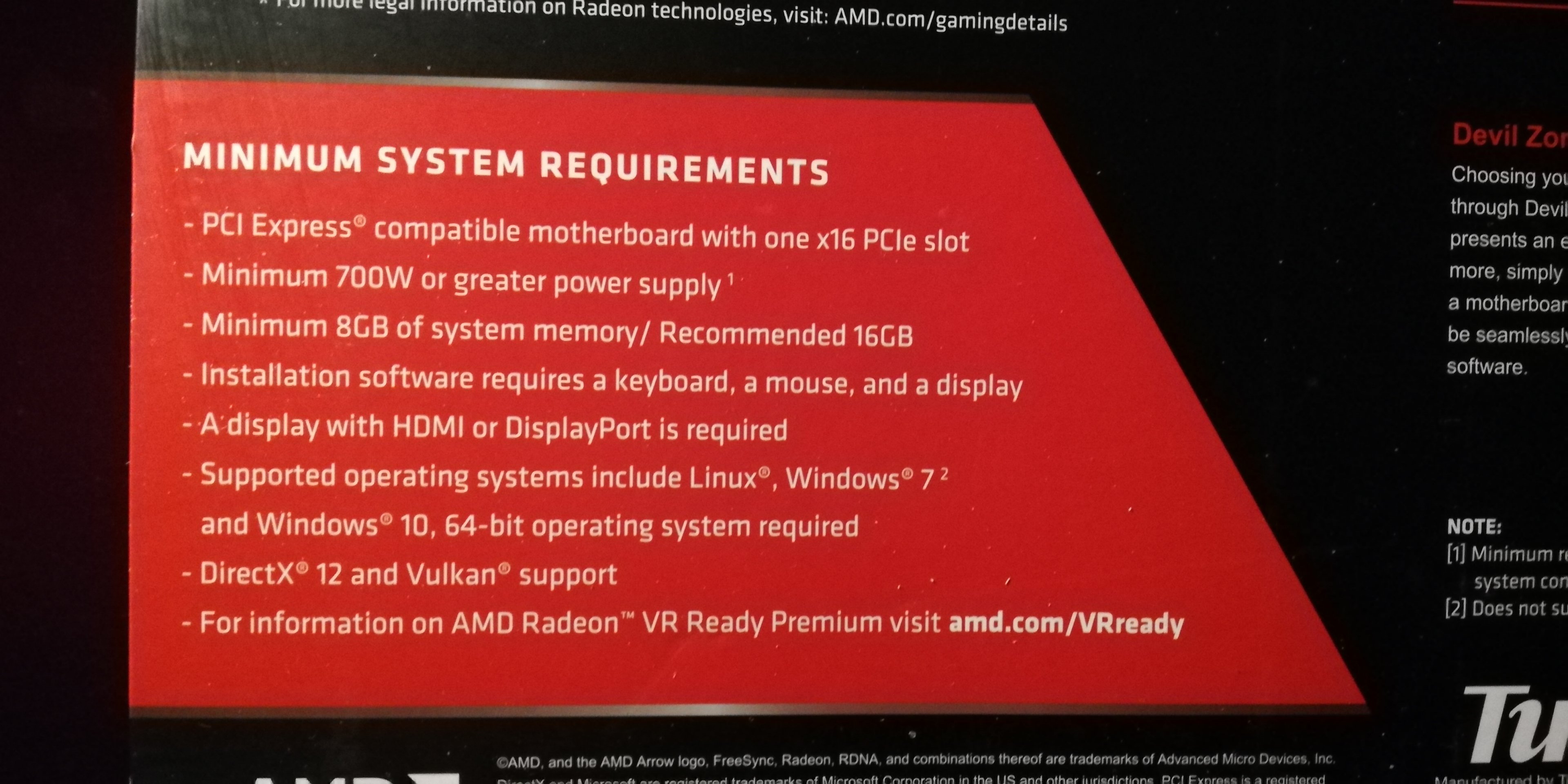 Dass im Internet oft hohe Angaben stehen hatte sich ja mit den letzten Posts hier zu meiner Frage geklärt. Aber wie ist es, wenn auch auf der Packung selbst diese Angabe steht? Wie gesagt, ich habe "lediglich" ein 600 Watt Netzteil und betreibe damit meine Vega 56.