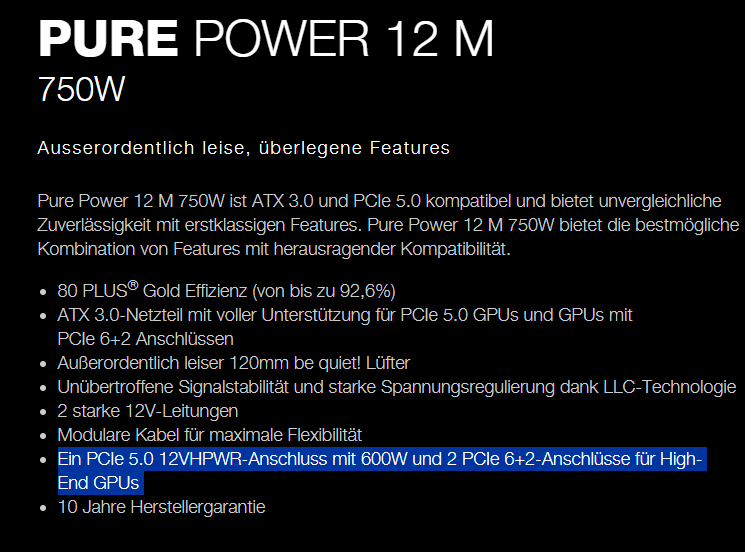 Ach, selbst der Netzteilrechner da sagte 650W würden reichen. Nur der Grafikkartenhersteller halt nicht. Aber die Grafikkarte soll gleich viel als maximum ziehen wie die davor, nur dass da 50W weniger als Minimum für das Netzteil angegeben waren. Da wundert man sich weshalb...oll1e schrieb:750W reichen locker für das System. Die Netzteilrechner von BQ oder sonstige Hersteller sind teilweise echt Käse, weil sie dir zu große Dimensionen verkaufen wollen. Das System läuft nicht permanent auf 100% Auslastung, daher hast du Durchschnittlich weniger Energieverbrauch.
