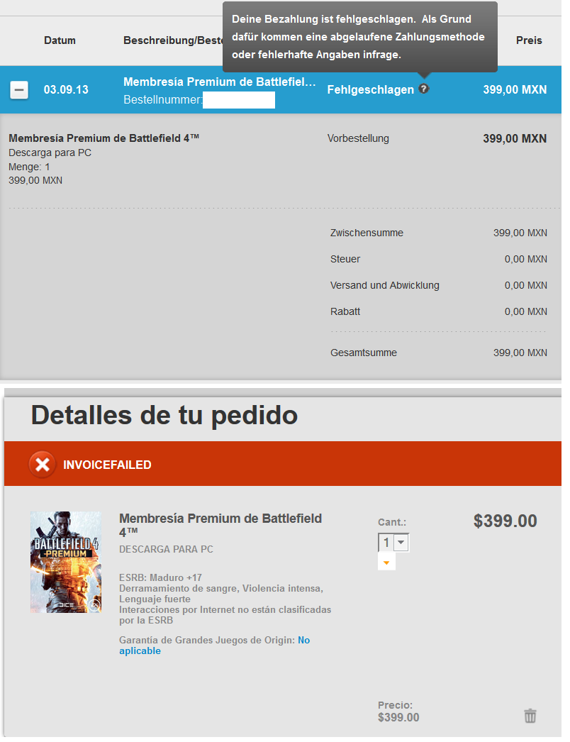 Edit: Da hier oft die Frage mit der Kaufanzeige auftritt: Bei mir wurde die KK sofort belastet und die Anzeige erfolgte sofort in Origin und im Battlelog.