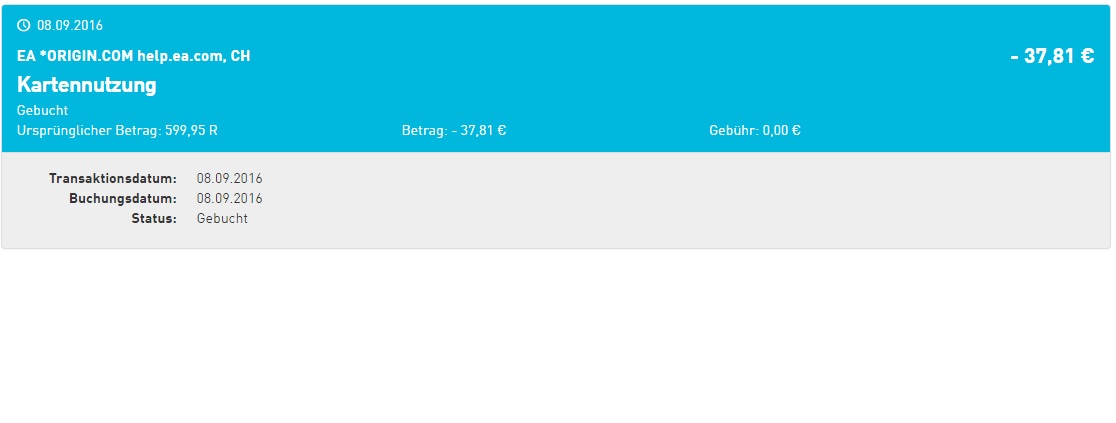 Ich habe am 03.09.2016 BF1 bestellt, meine Kreditkarte wurde wie bei den anderen von Mydealz auch noch nicht belastet.