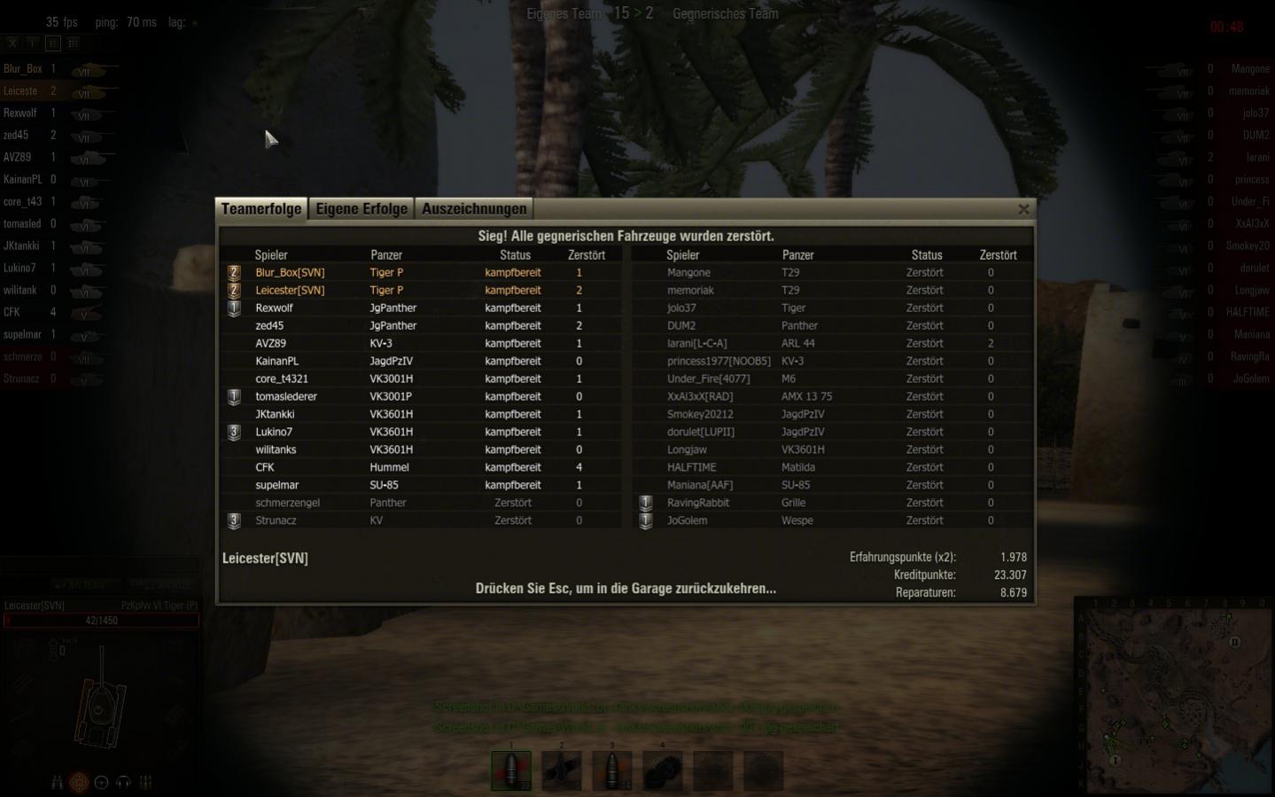 Das finde ich mittlerweile etwas schade, dass die Spieler in WoT so unflexibel sind und nie etwas anders wagen und sobald etwas anders läuft als geplant, geht das Team fast gänzlich unter. Da rühme ich mir doch die T2 Gefechte