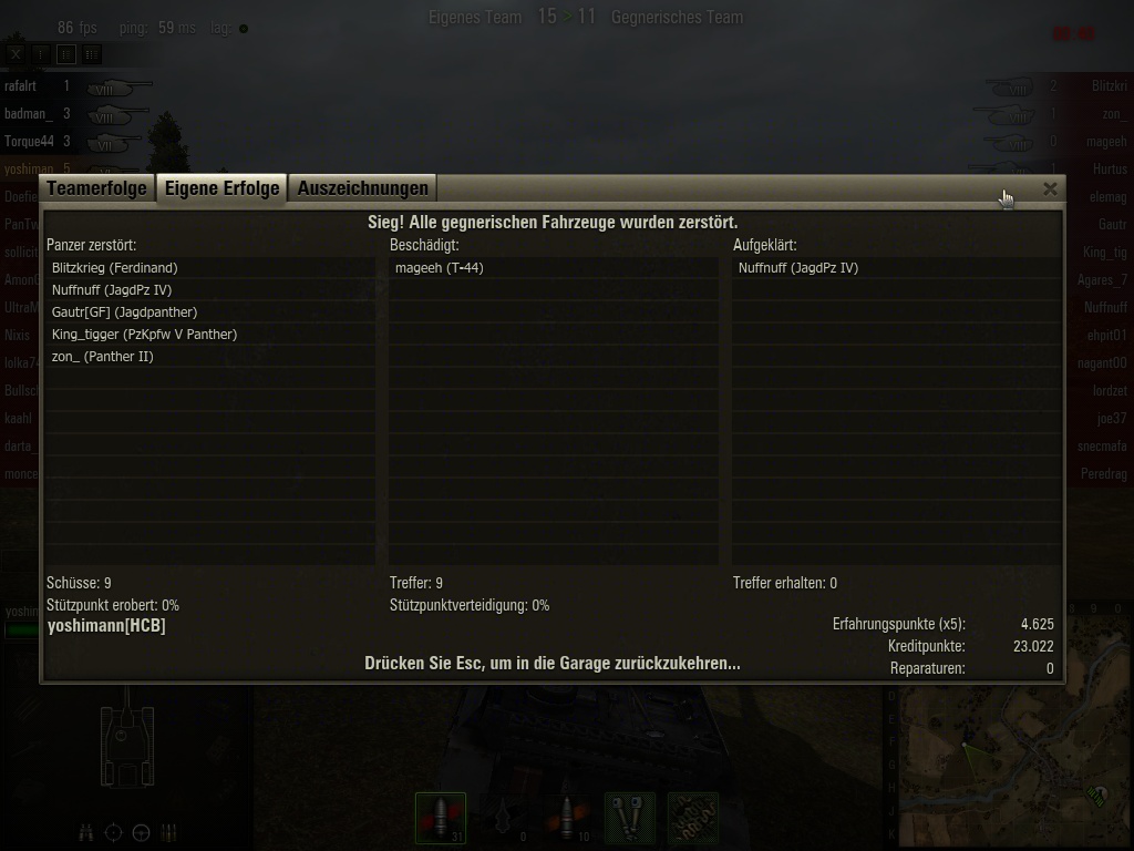 einem type 59 eine HE auf die rückseite der wanne geknallt. 50hp schaden. vorher hatte er noch 100hp übrig also hat er sogar überlebt!