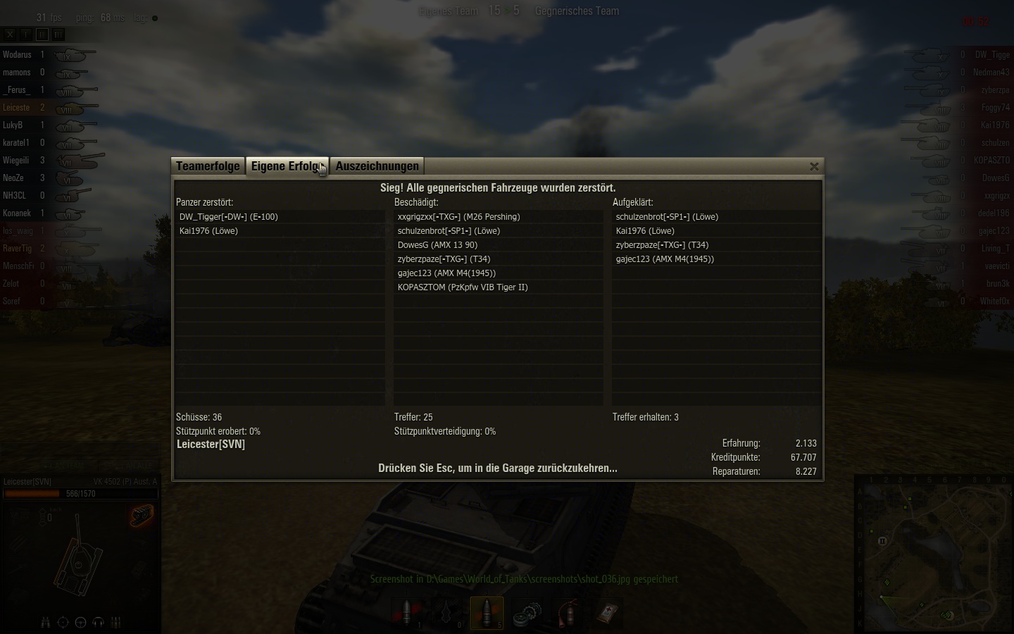 Einfach mal mit dem kleinen T25 & rammer über die halbe Karte einen IS zusammengeschossen. Mit vk3601 und der Konischen ist es sowieso lustig. :-)