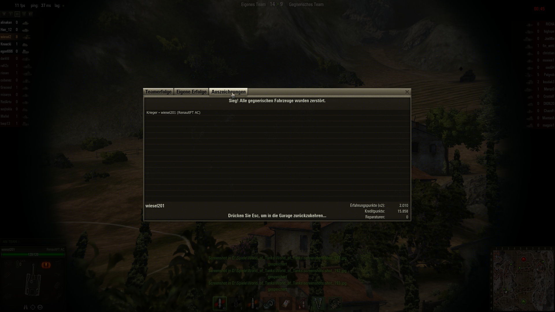 2. Spiel - Lorraine im Flugplatz. (9 Abschüsse, Bild auf anderem Rechner, sry.)