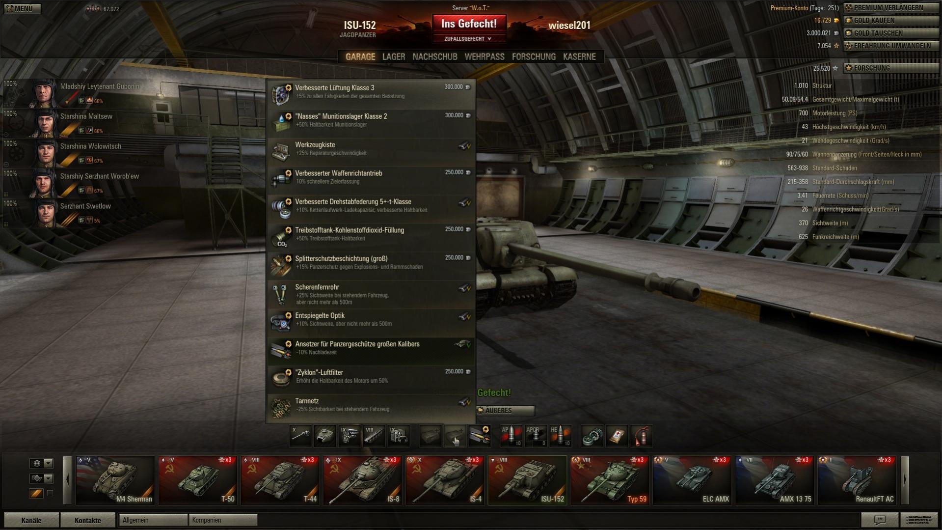 Ahh, ich hab bei meinem VK nur nen anderen Turm und die KwK 42 L/70 eingebaut, und die Crew ist bei 85% (Kommandant) und 92% (Rest)