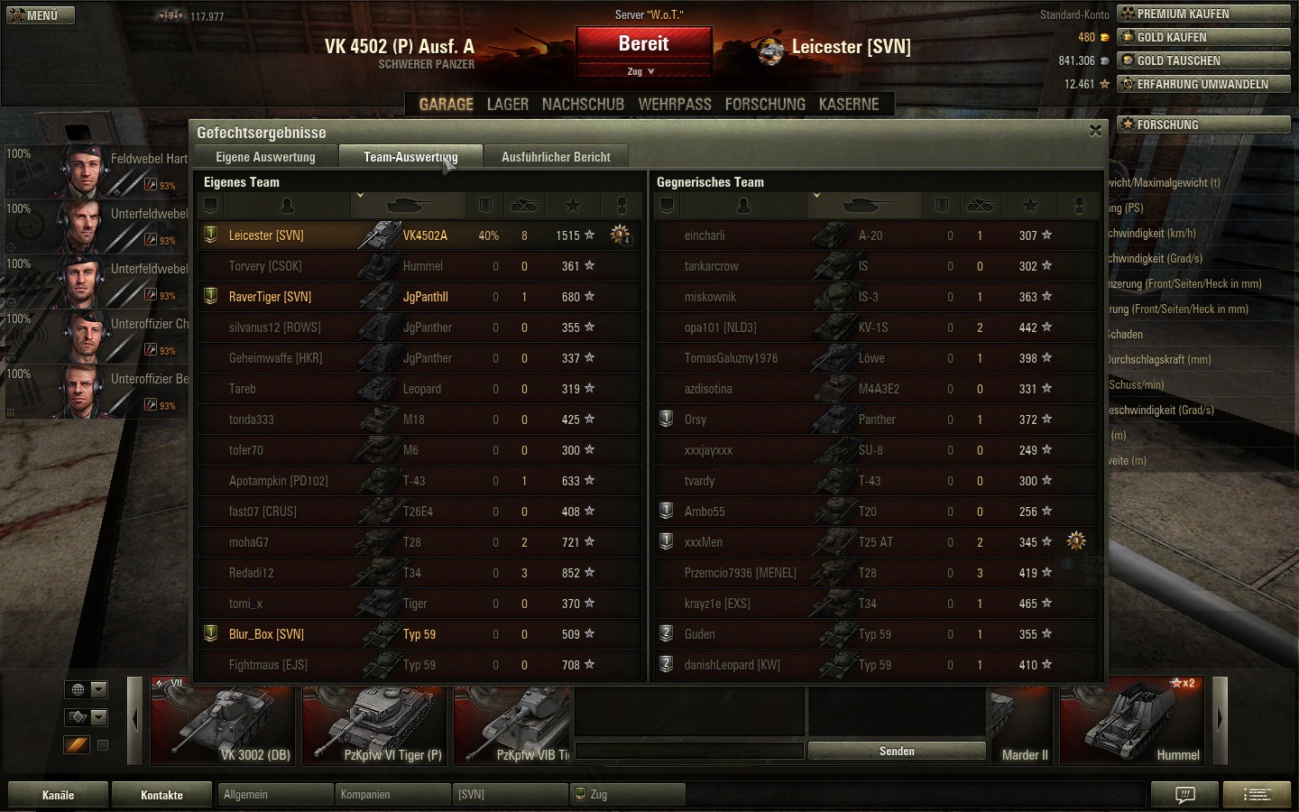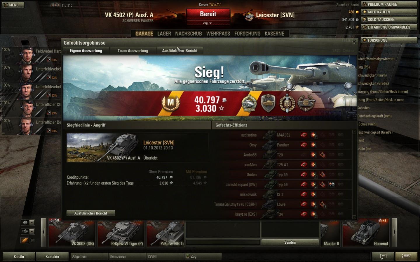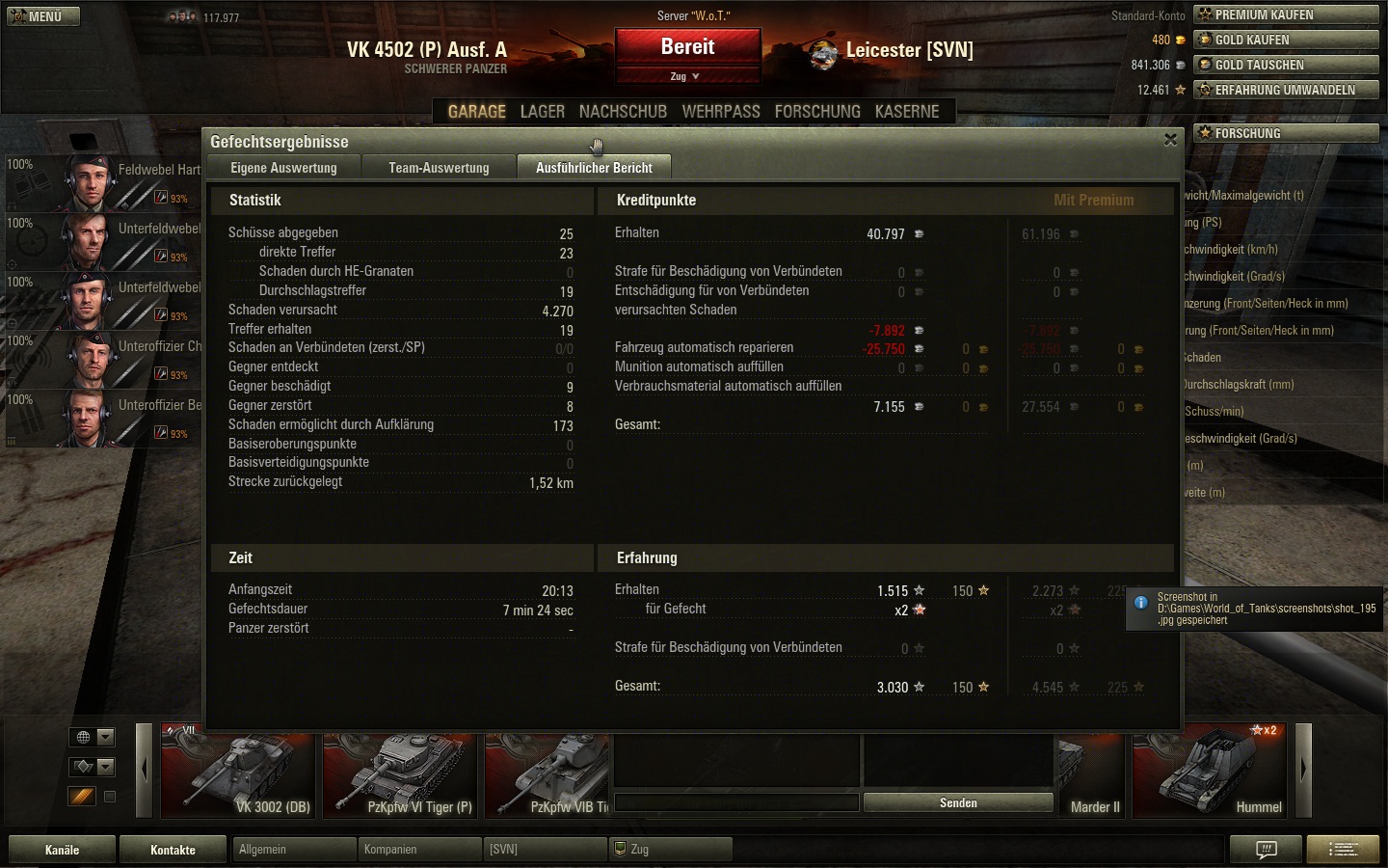 Auch das wären für den "Normalo"-Farmpanzer noch zumindest 4 Runden. Das Spielen im Clan verlangt mehrere TierX. Ohne Premium weine ich daher jedem Credit hinterher. Wenn Tier9 nicht so teuer im Unterhält wäre und ich die Verkaufssummen nicht für Tier10 gebräucht hätte ständen E50, JT und E75 wohl noch in der Garage.