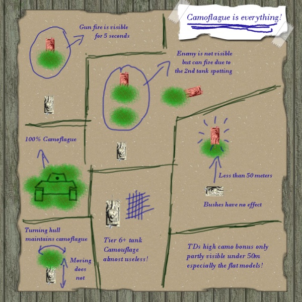 Das beliebte und viel gepriesene "Verstecken" in sogenannten Busch-Nebeln ist ebenso wirkungslos gegen die feindlichen Sensoren wie das postieren hinter einer für den Feind völlig uneinsehbaren Hügelkuppe.