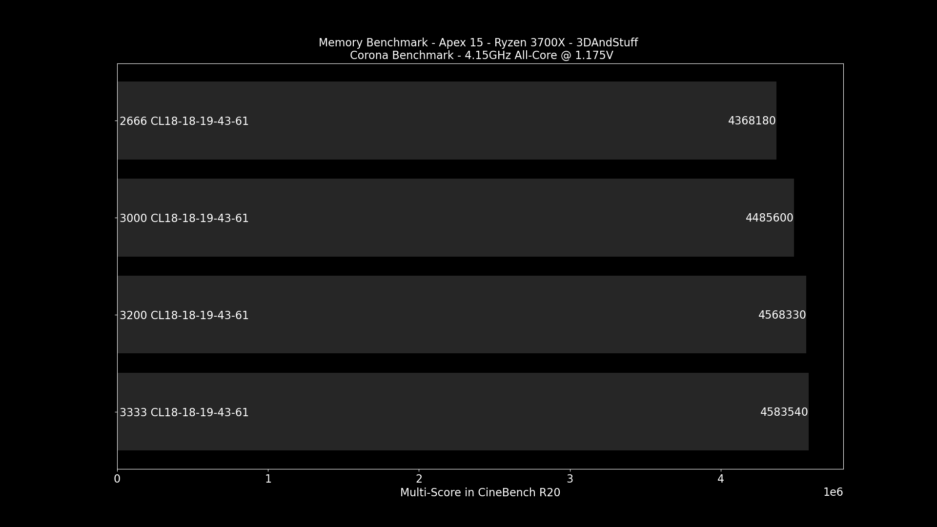 Bei CineBench R20 hat das ganze aber wiederum fast keinen Effekt gezeigt, weniger als 1% Unterschied über alle Speichereinstellungen. Der Corona Benchmark ist hier die Ausnahme. Bei Gaming sieht das schon anders aus.