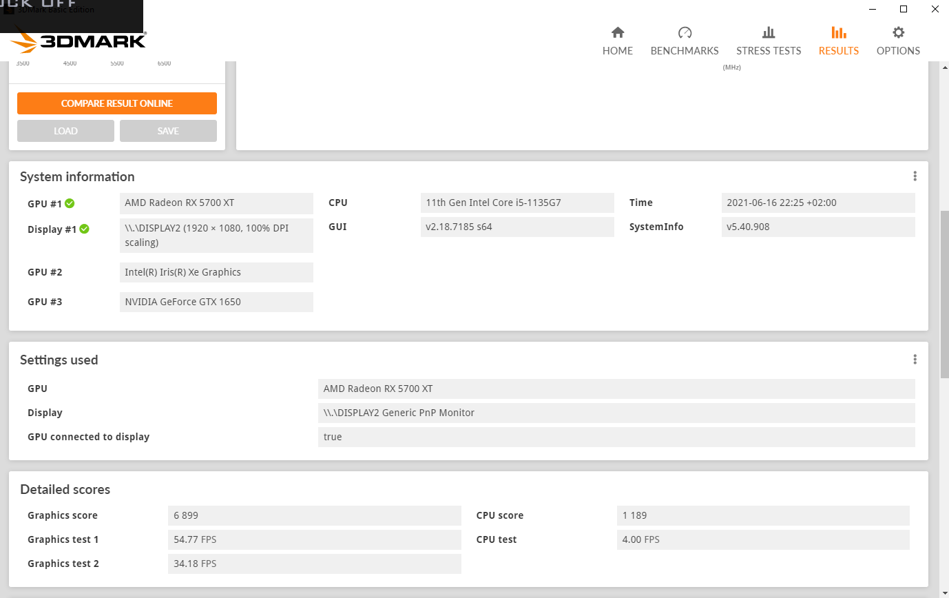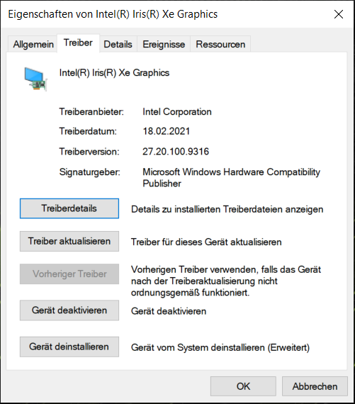 Eine Sache noch für die eGPU-Werte muss die Intel Xe Grafik abgeschaltet werden.