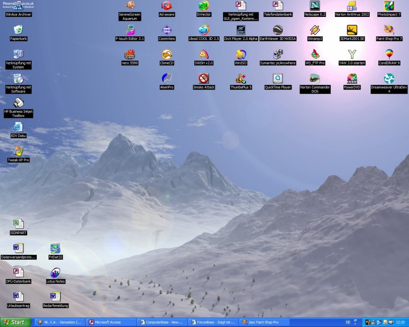 Bahh...kann ich locker toppen....ist zwar nur bei mir auf Arbeit...aber zuhause siehts genauso aus ...da hab ich nur noch ein paar mehr Verknüpfungen in der Taskleiste .