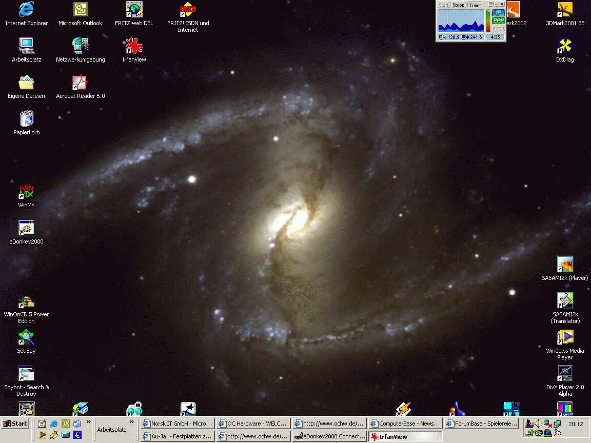 Naja ich hab's gern ordentlich und quetsch alles in die Quickstart Leiste. Wie man sieht setzte ich immer noch auf Win 98, das ist aber nur eines meiner Betriebssysteme, aber die größte Partition und die meistbenutze.