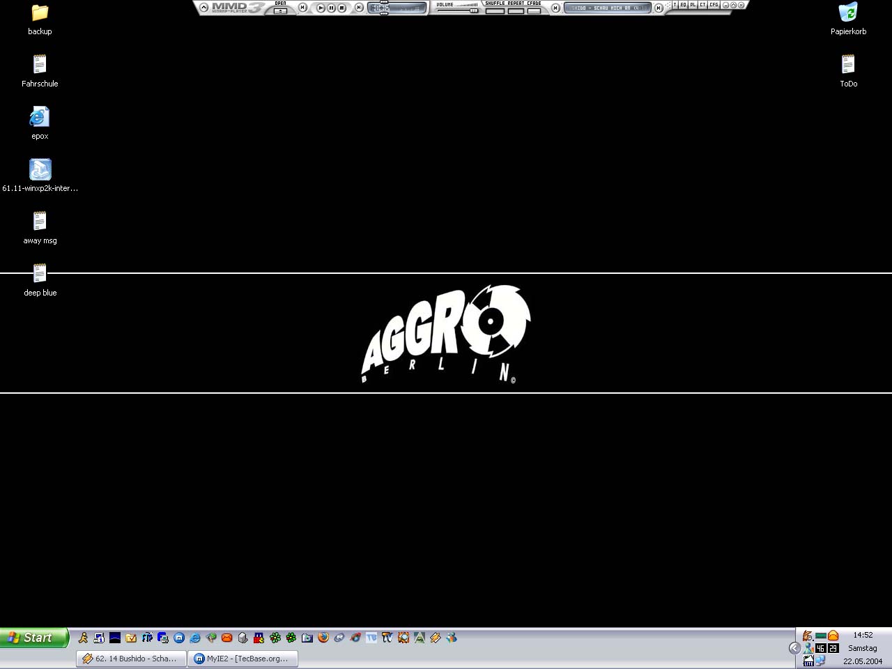 Hier mal mein Desktop, nach dem ich vorgestern auf einem Aggro Berlin Konzert in Bremen war, was nebenbei gesagt, hammergeil war. Würd es mir jederzeit wieder antun. Aber egal, hier mein Desktop.