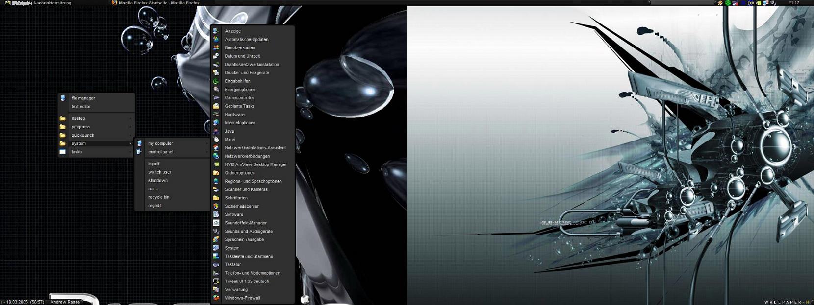 Habe meinen Style auch mal auf Longhorn umgestellt. Einmal mit RightClick von Stardock (eigene Skin) auf dem ersten Bild und einmal mit normalem Windowsmenü auf Bild 2.