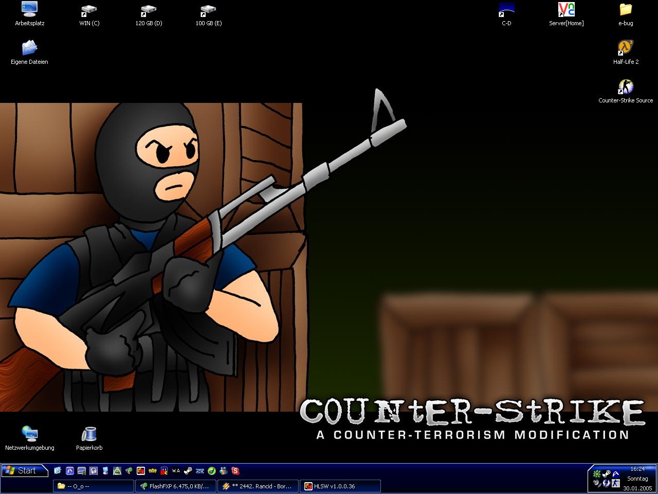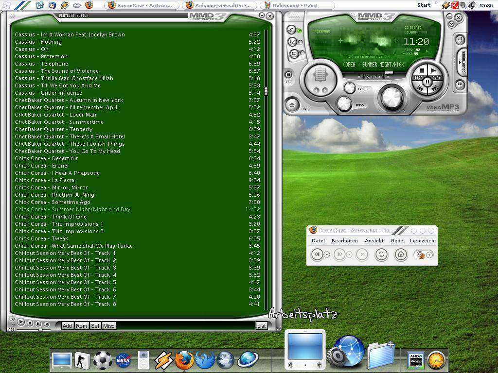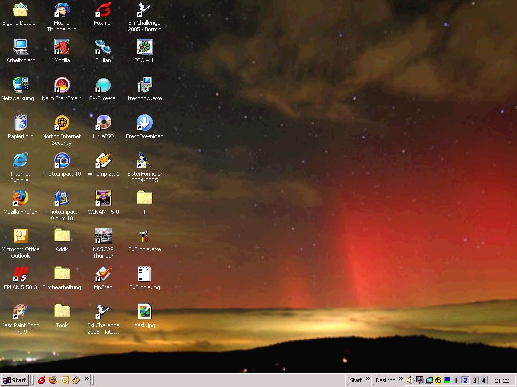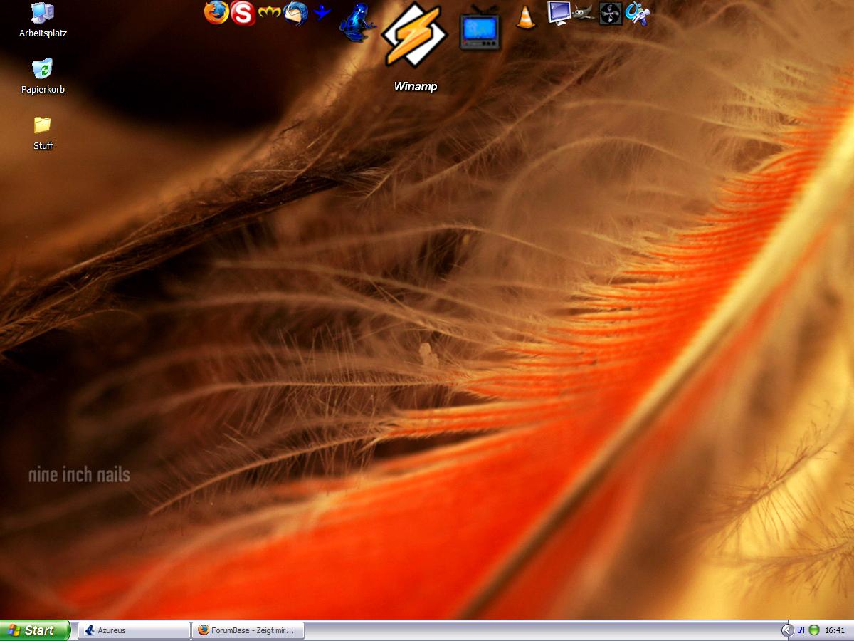 Hier mein neuer, mal in Anlehnung an das mittlerweile schon seit geraumer Zeit langweilige Standard-Windows-Hintergrundbild. Heute auch wieder mal mit neuer Theme und zum Hintergrund passende Color-Theme für meinen Winamp-Skin .