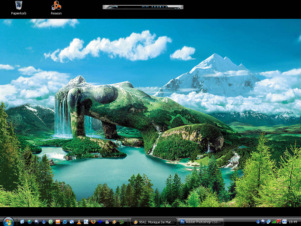 Hier mein Desktop, hochgeladen auf mein Webserver, spart Platz hier, XP in Vista-Style mit einem einfachen Hintergrundbild: