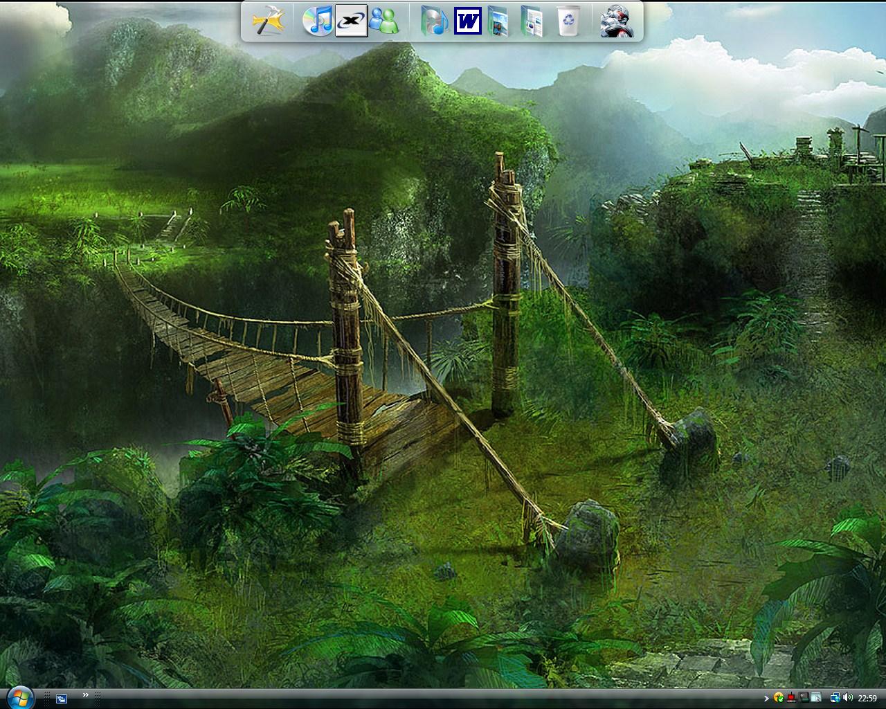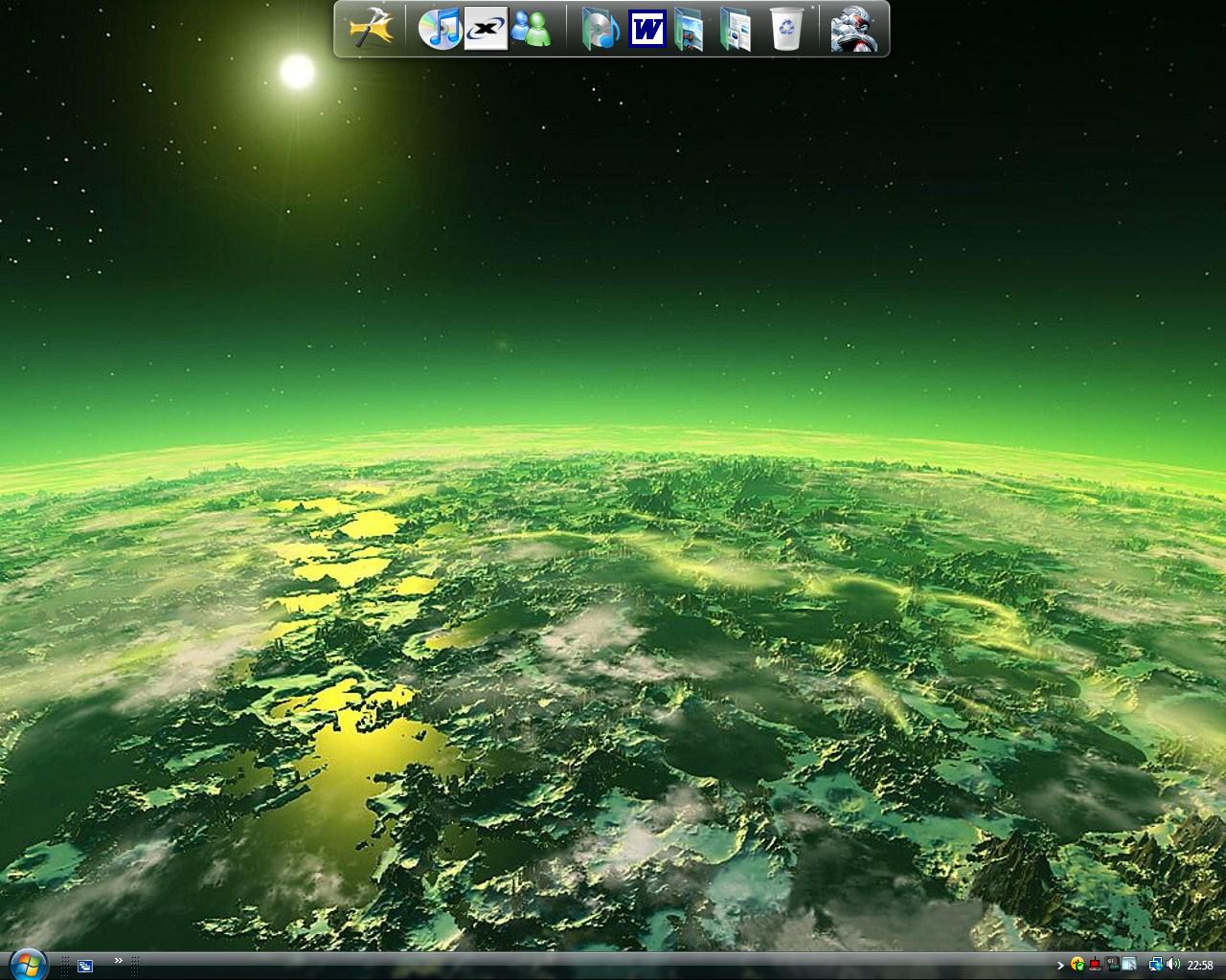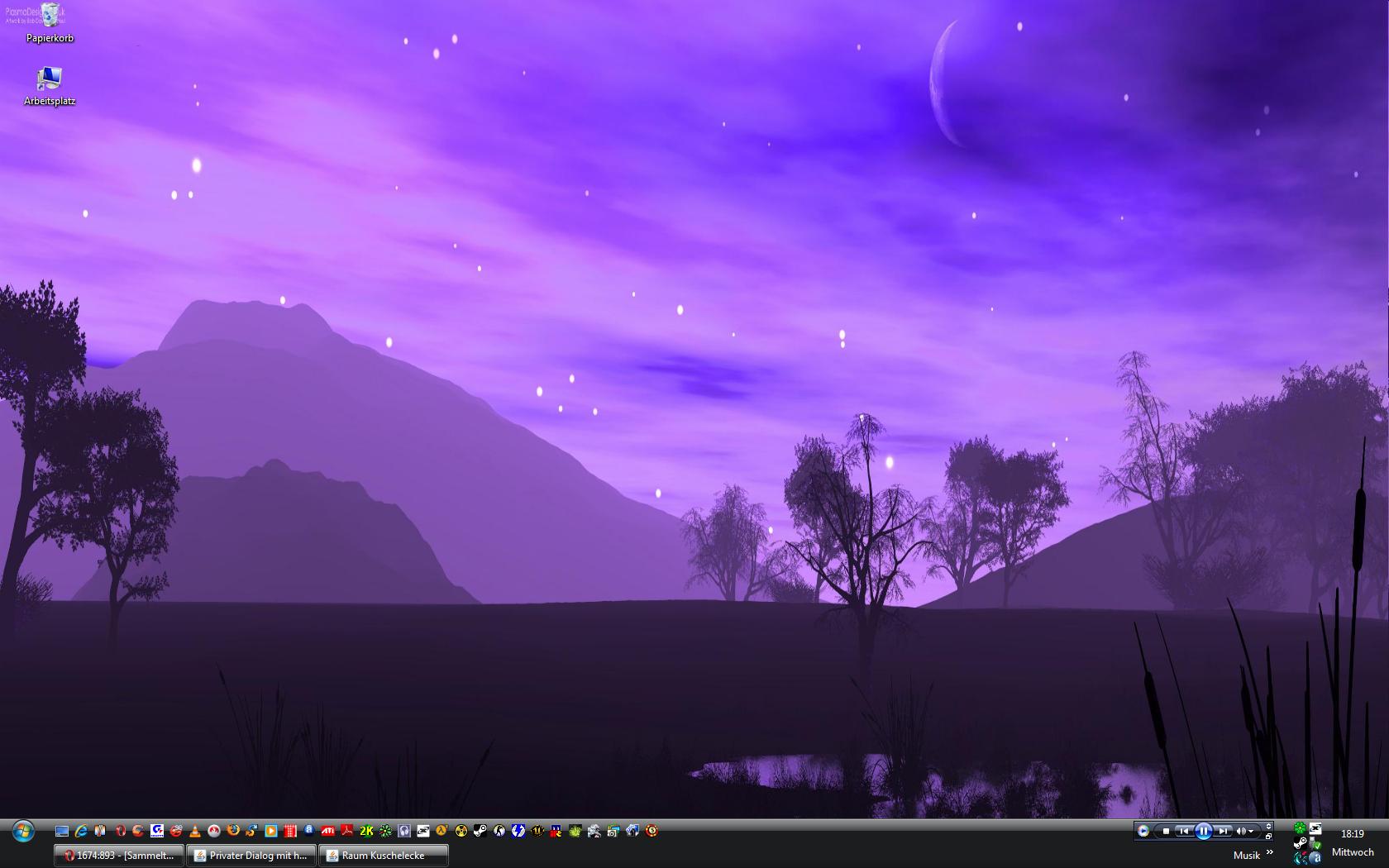 sieht zwar nicht sehr speziell aus, aber egal. nun, das wichtigste was ich brauche. aufem desktop die spiele und in der leiste die programme, die ich am wichtigsten brauche und ein paar öffne ich schnell mit meinen speziellen tasten.