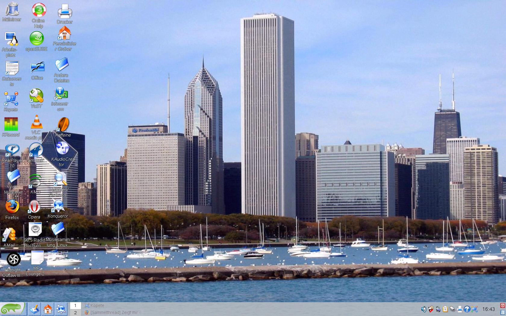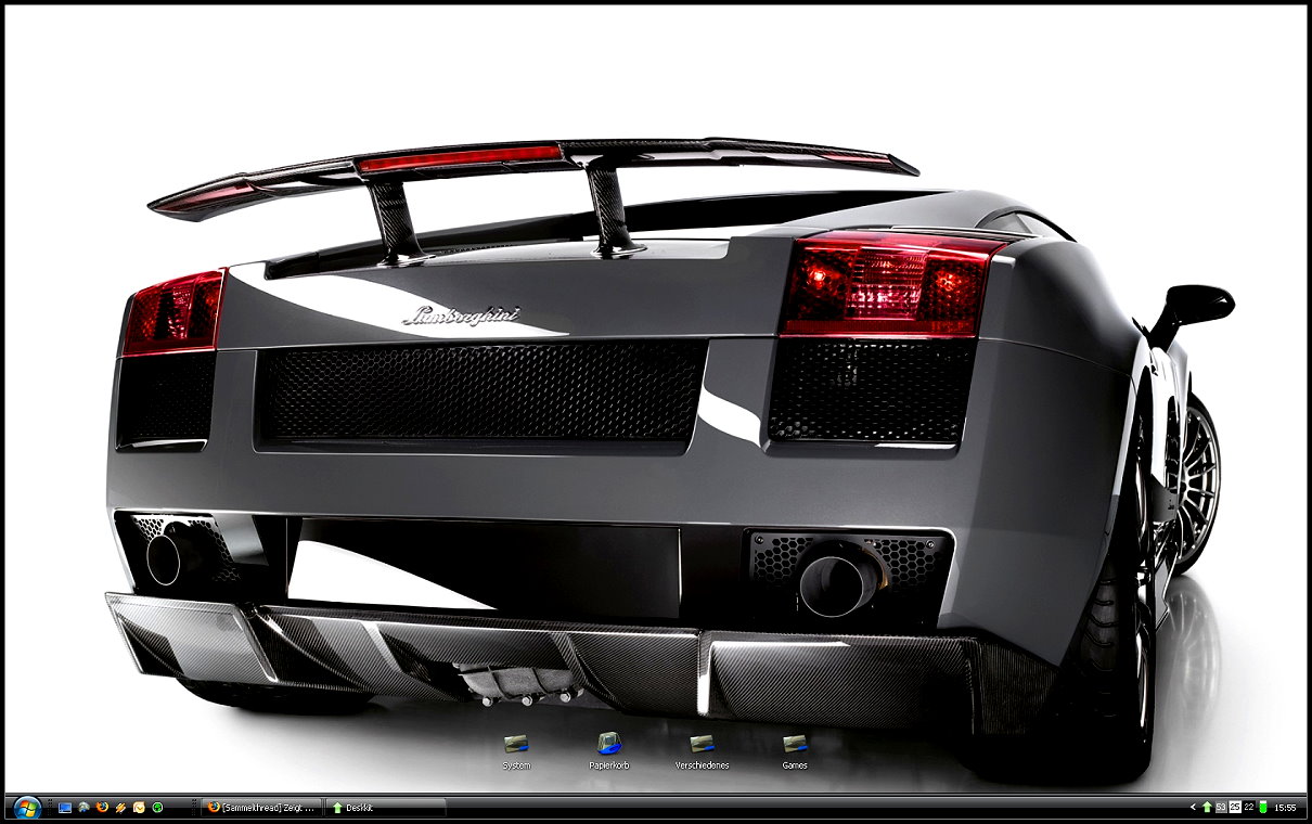 Hier kommt mein Desktop (Habe alle Icons "gelöscht" damit man den Screen in seiner vollen Pracht bewundern kann (Das Schwarze Loch oben links ist mein papierkorb) (sry musste zuschneiden, damit die Dateigröße stimmt)