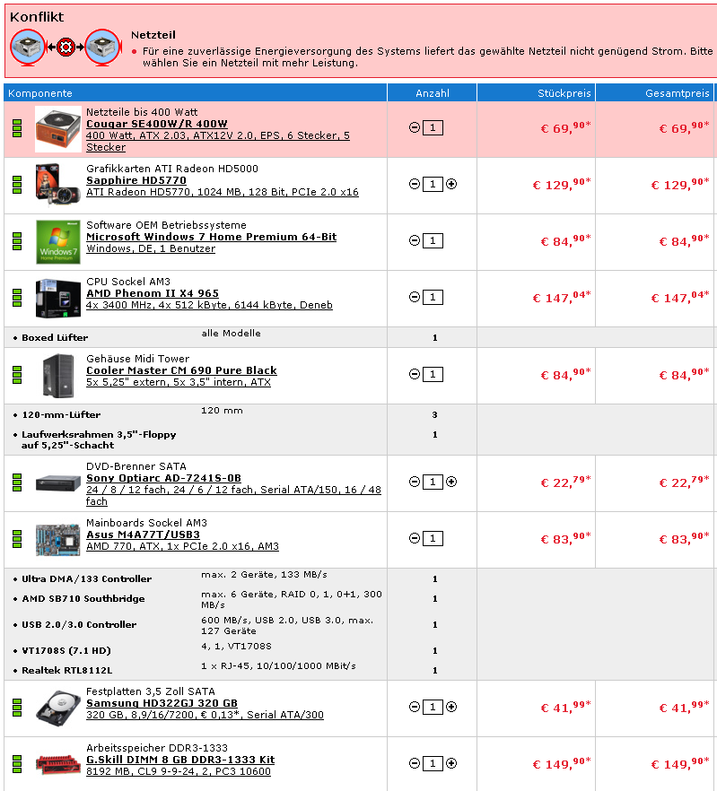 So hallo ich noch mal... Wollen die mir nur Angst machen oder teurere große Netzteile verkaufen? Laut Alternate Zusammenstellung reicht das NT nicht... Siehe Dateianhang.. Was denkt ihr - kann man darüber hinweg gehen?