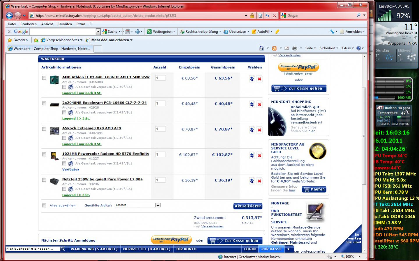 und zwei 0/8/15 Festplatten und nen DVD Brenner ich ich hier noch rum fliegen habe.