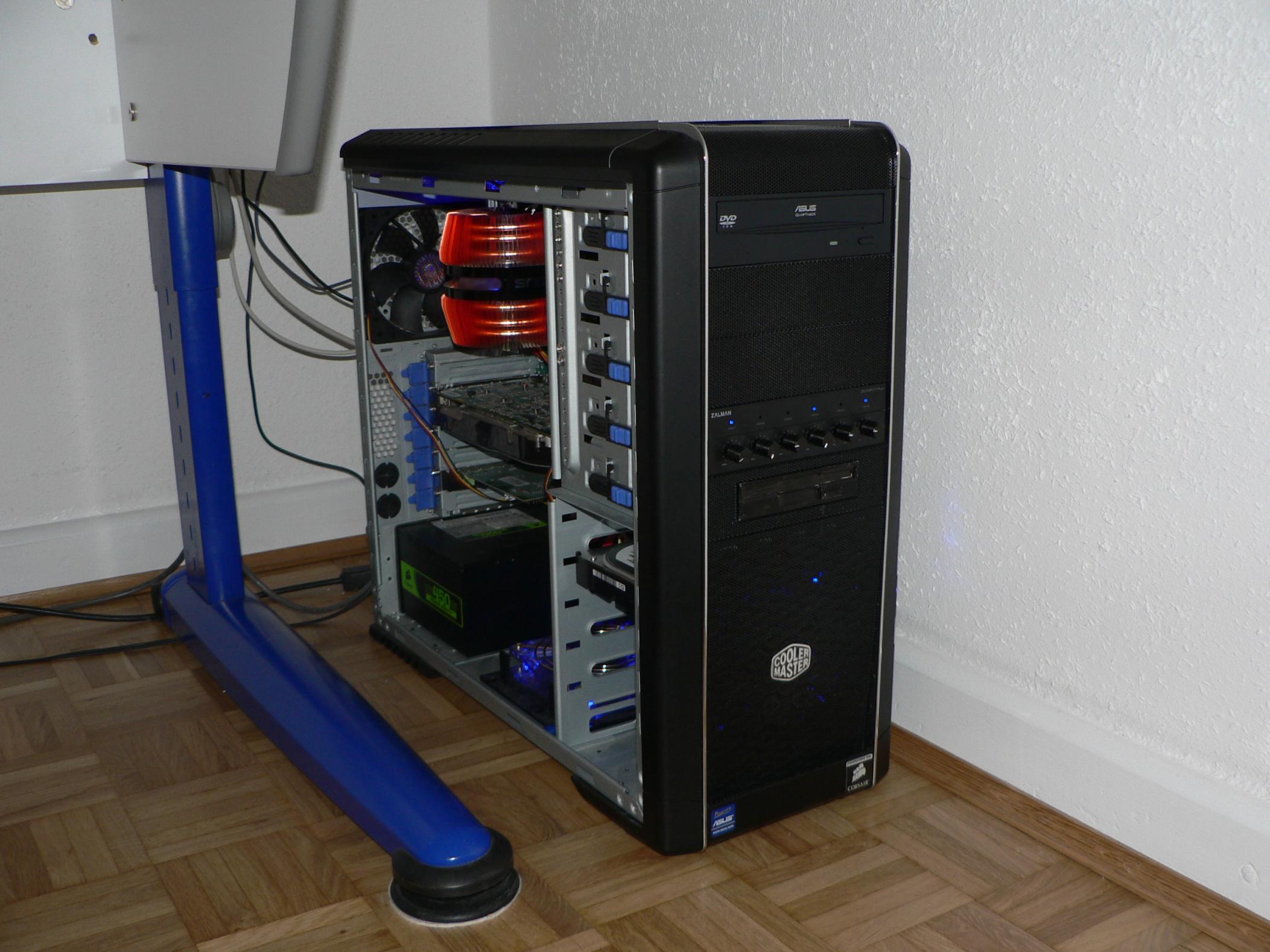 Kleines Manko noch der Festplattenlüfter der mehr oder weniger gegen den Festplattenkasten pustet, sind zwar schlitze da aber naja. Und ich hab mir nen dummen Kratzer in die Seite gehauen,