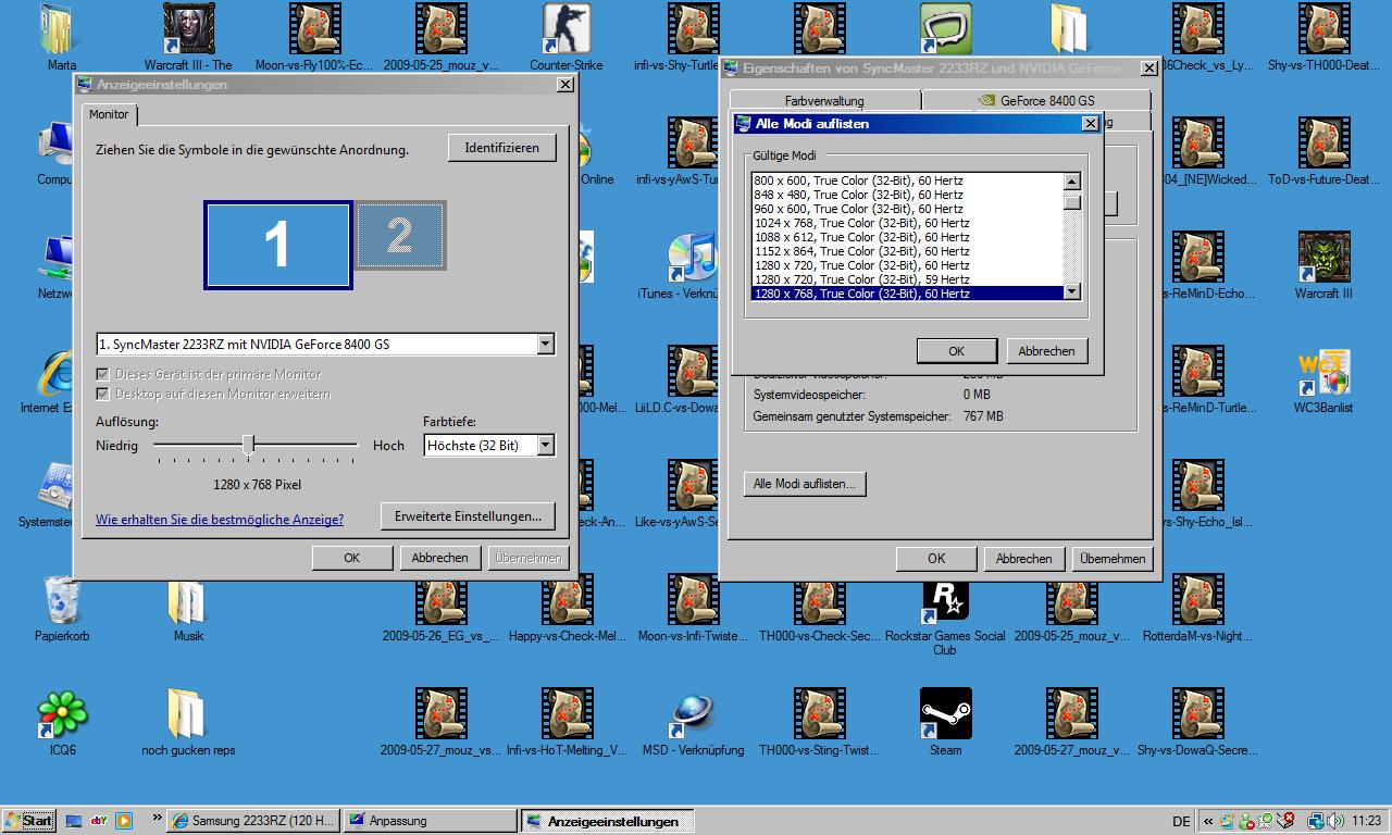 Du kannst noch versuchen aktuelle Nvidia Treiber für die 8400Gs zu installieren. Naja und danach noch vielleicht den telefonischen Support von Samsung ärgern.
