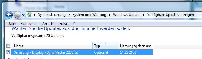 Vorhin habe ich online "Treiber aktualisieren" durchgeführt und habe jetzt den Samsung Treiber vom 21.10.2008 drin. Funktioniert auch.