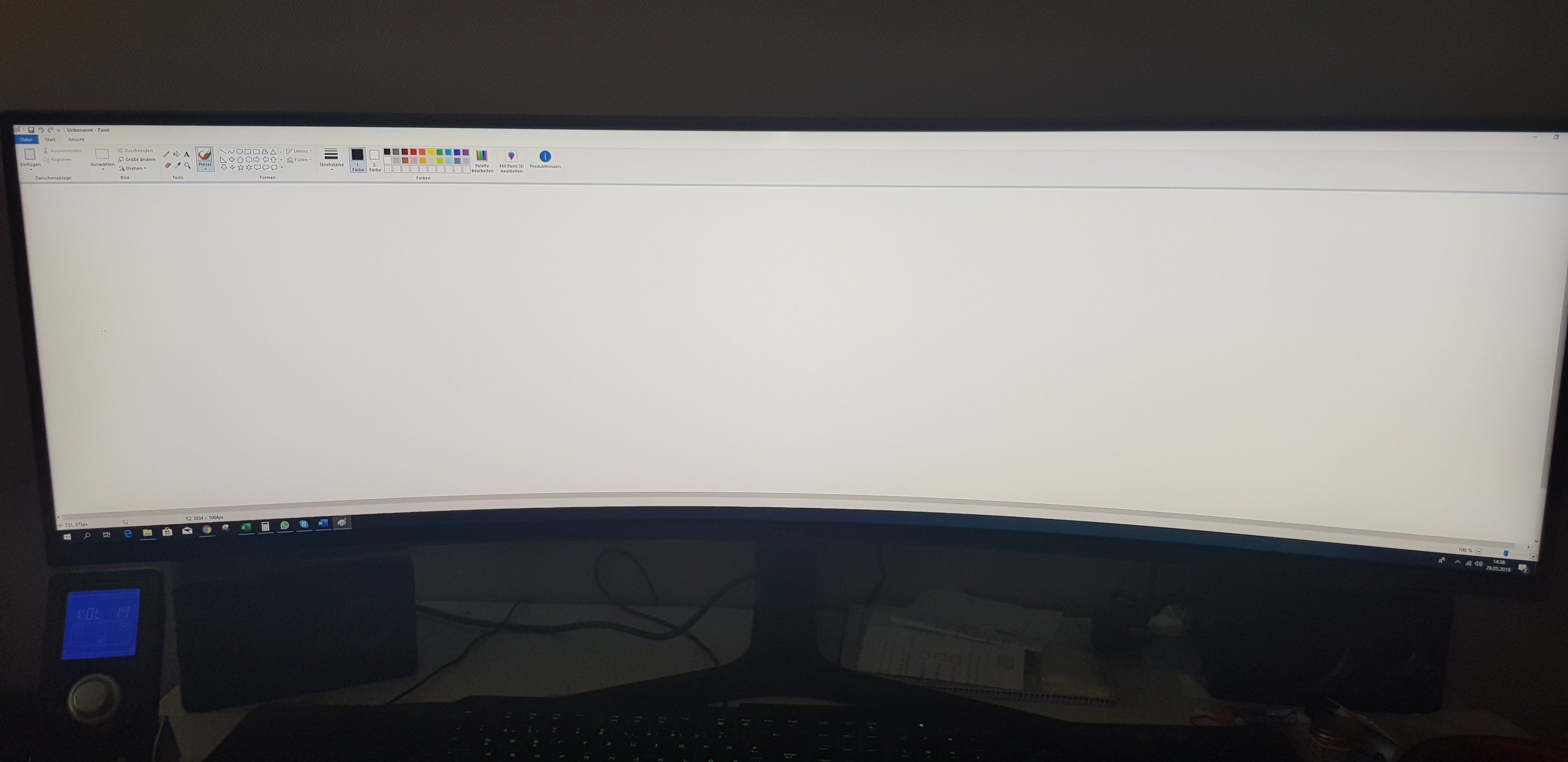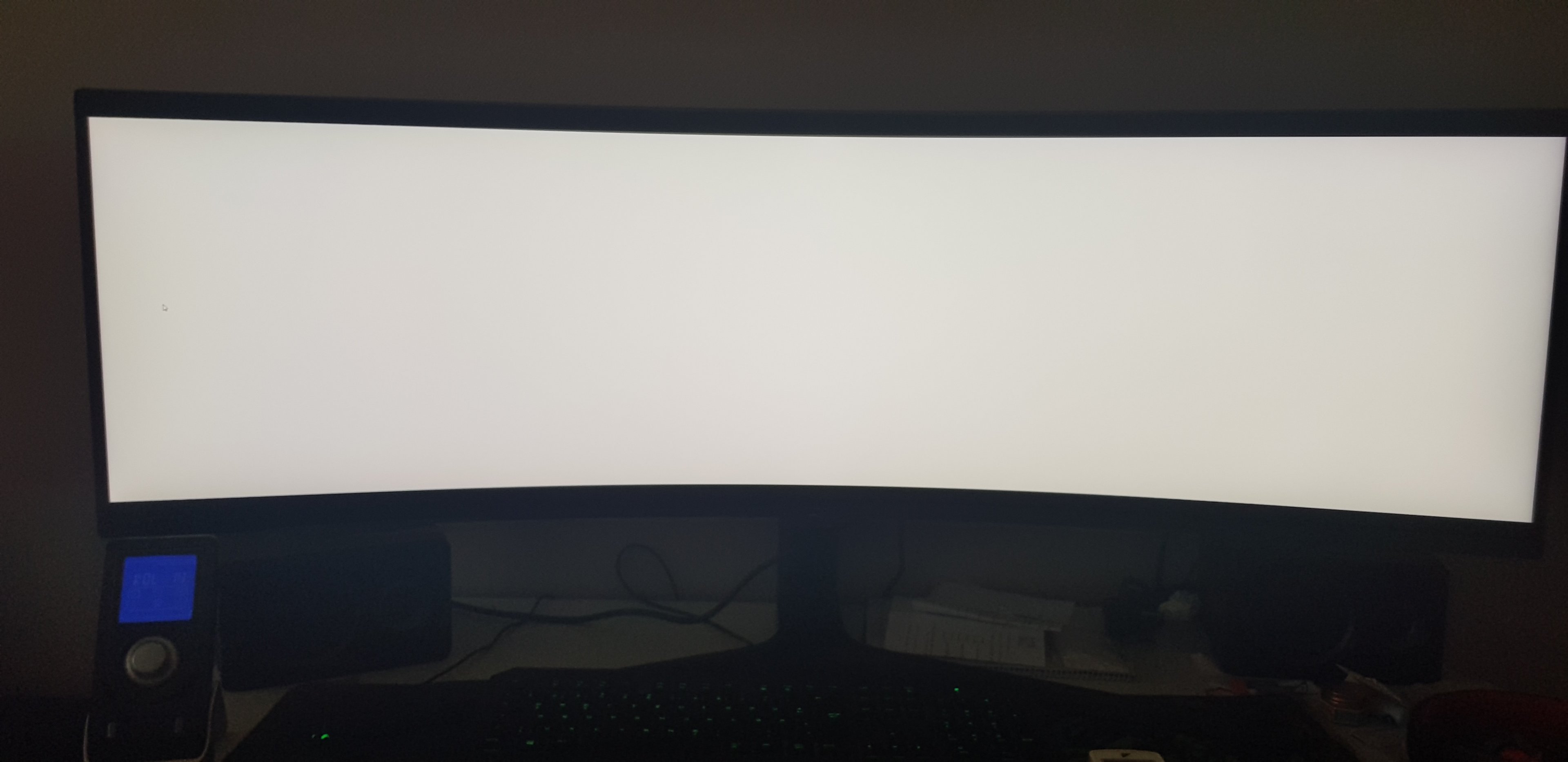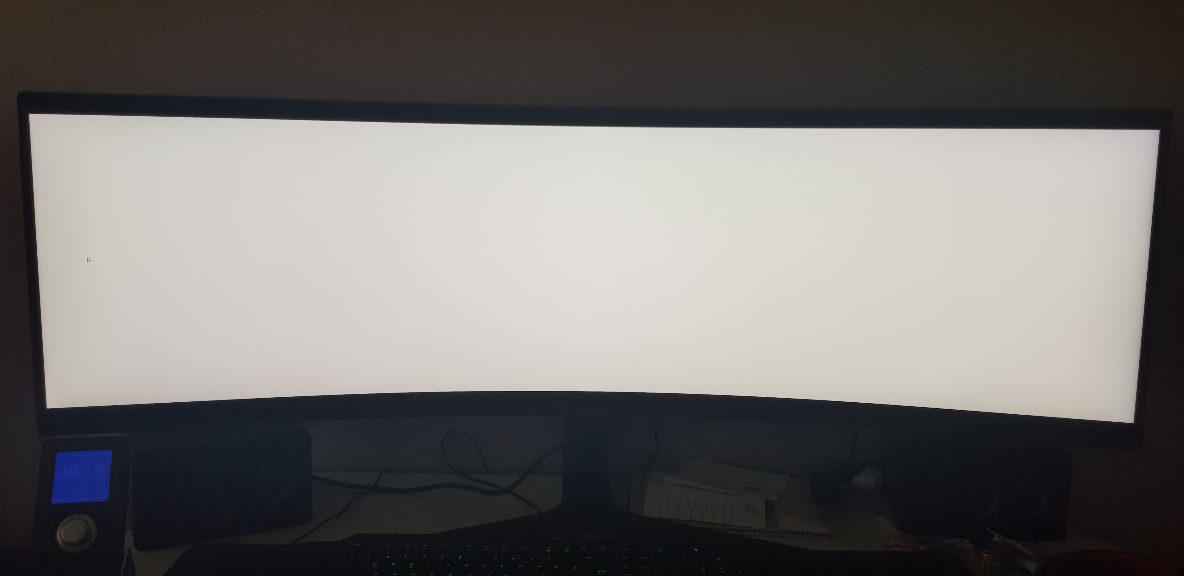 Nun Ist mir direkt auf anhieb die ungleichheit der Farben aufgefallen. Die komplette Rechte Seite hat einen Gelbstich im Vergleich zur Linken, die eher neutral aber etwas mehr helligkeit aufweist. Die üblichen Helligkeitsunterschiede in den Ecken, die Ich eigentlich gewohnt bin scheinen bei diesem Bildschirm überhaupt nicht zu existieren